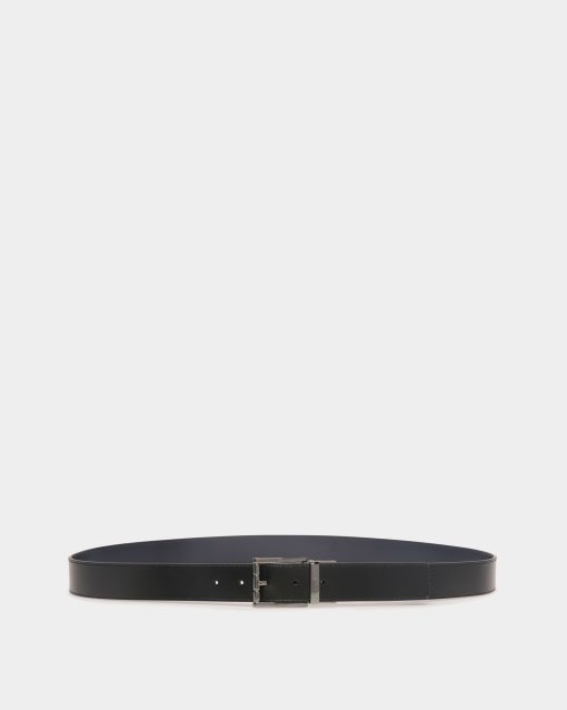 Bally Men’s Astory 35mm Reversible And Adjustable Belt In Black And Navy Blue Leather | Multicolor