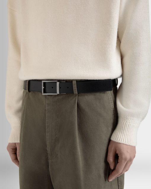 Adjustable and reversible, the Astory 35mm belt is crafted from black calfskin. The clean lines of the ruthenium-hue metal buckle ensure its versatility.