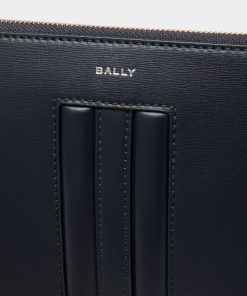 Bally Men’s Bags Mythos Pouch In Navy Blue Recycled Leather | Blue