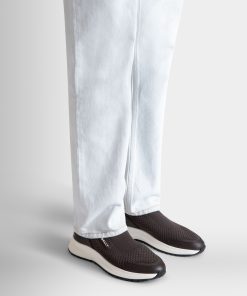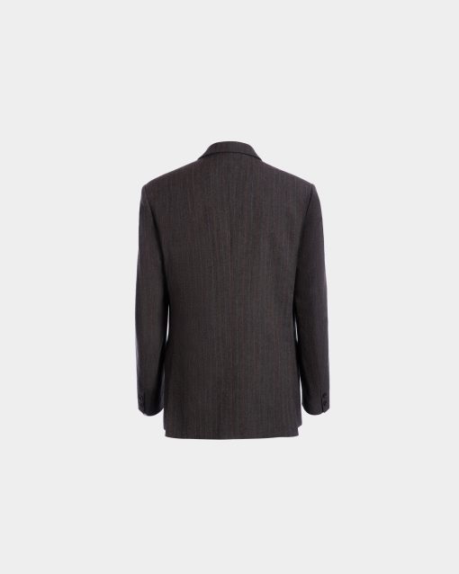 This notch-lapel blazer in a grey wool blend is characterized by a classic pinstripe motif.