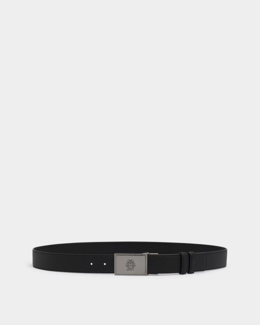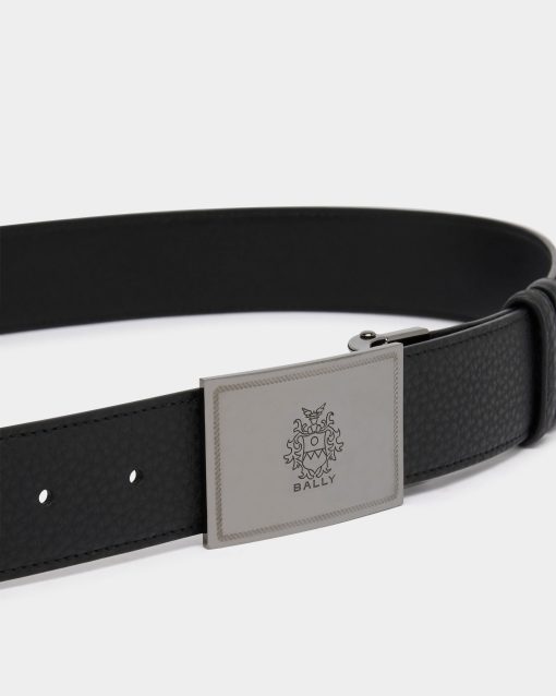 Bally Men’s Crest Plaque 35 Mm Adjustable And Reversible Belt In Black And Ebano Leather | Multicolor