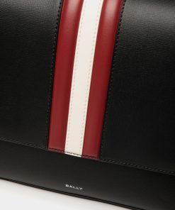 This Mythos crossbody bag is meticulously crafted from recycled bovine leather with a scratch-resistant textural finish. A red and white padded Bally Ribbon embellishes the flap closure.