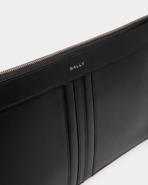 Bally Men’s Mythos Pochette In Black Recycled Leather | Black