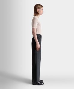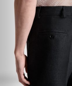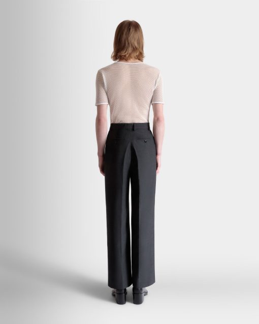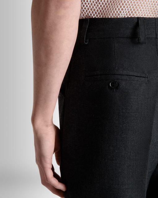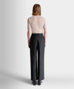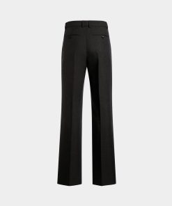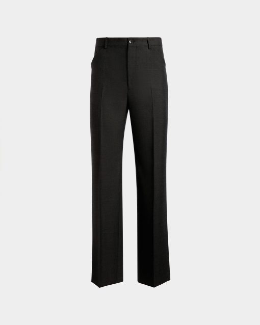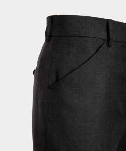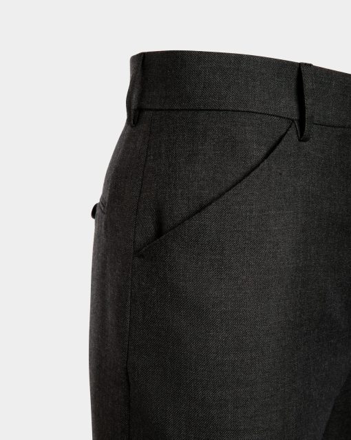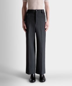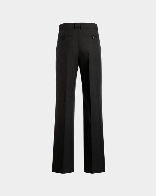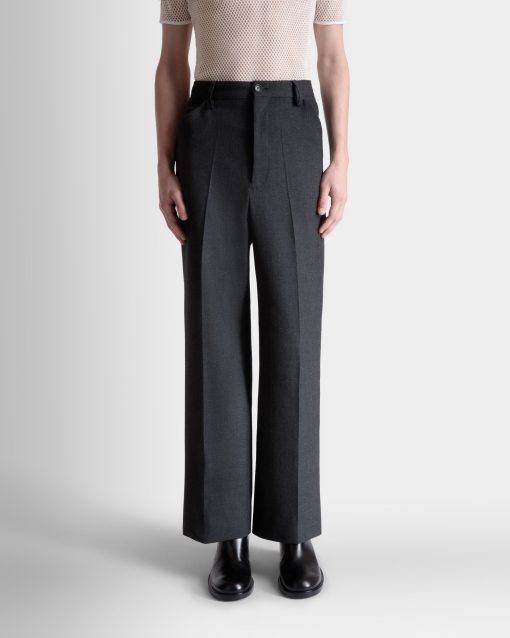 In a woven wool blend, these classic mélange grey pants feature a flat front and creases down the front and back of the leg.