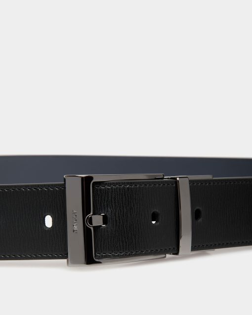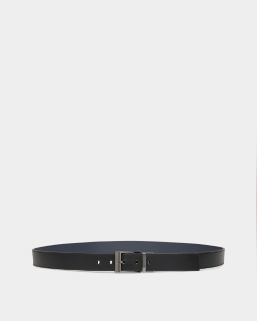 Bally Men’s Shiffie 35mm Reversible And Adjustable Belt In Black And Navy Blue Leather | Multicolor