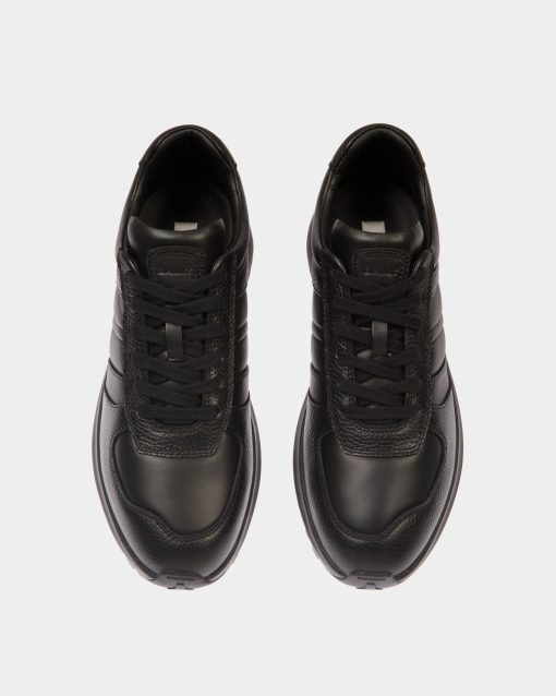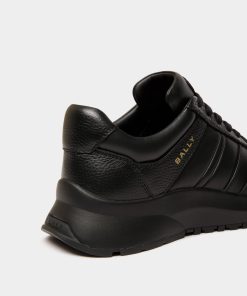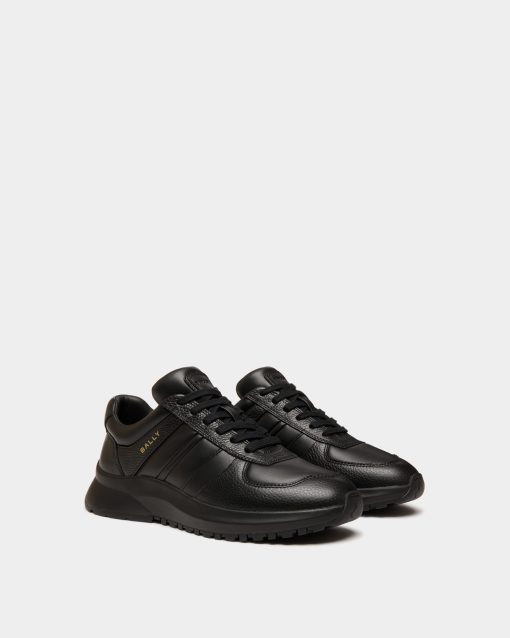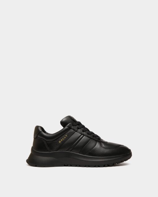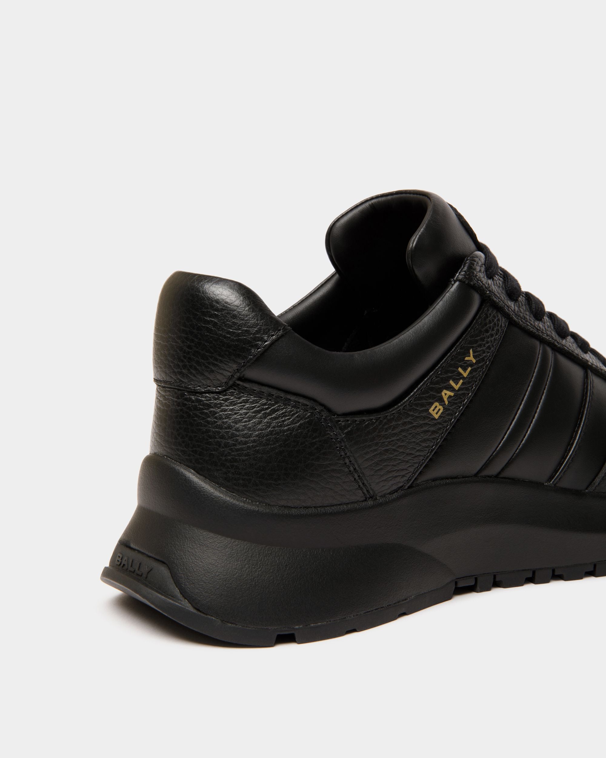 In grained and smooth black leather, this Outline sneaker has a chunky yet lightweight Vibram running sole for all-terrain grip. A gold-foil Bally logo trims the monochromatic Ribbon motif at the side.