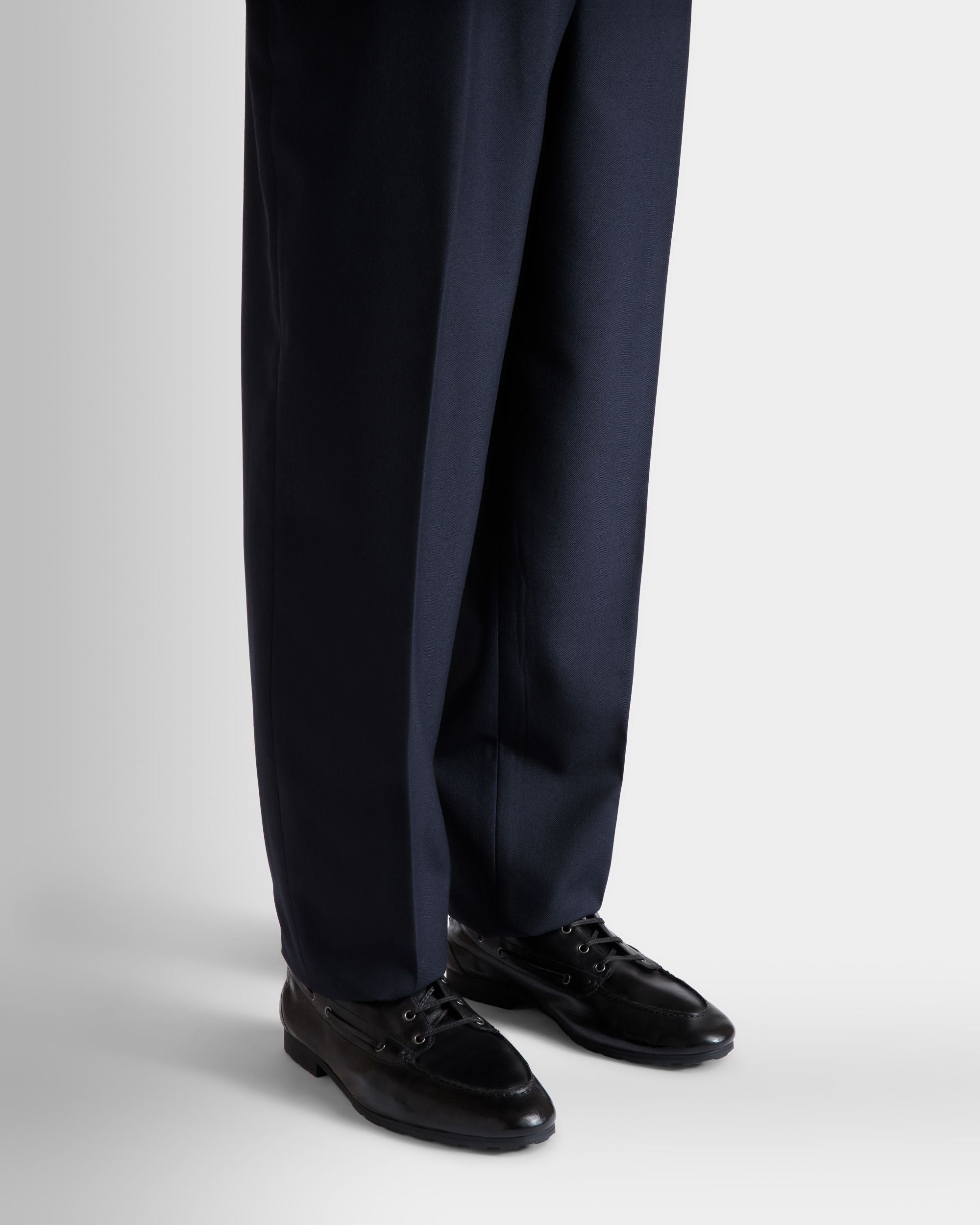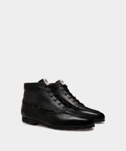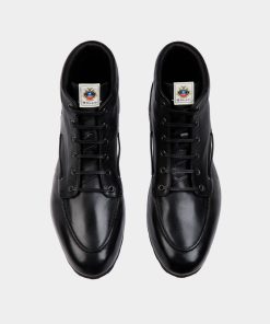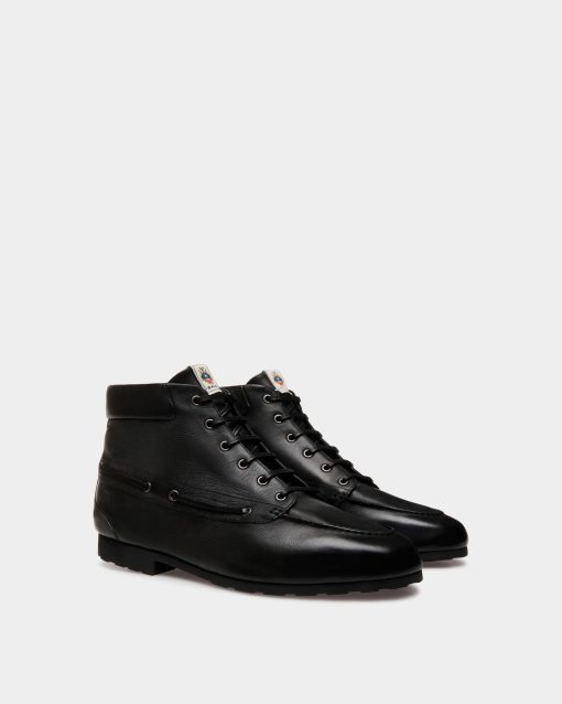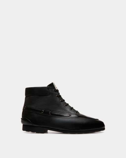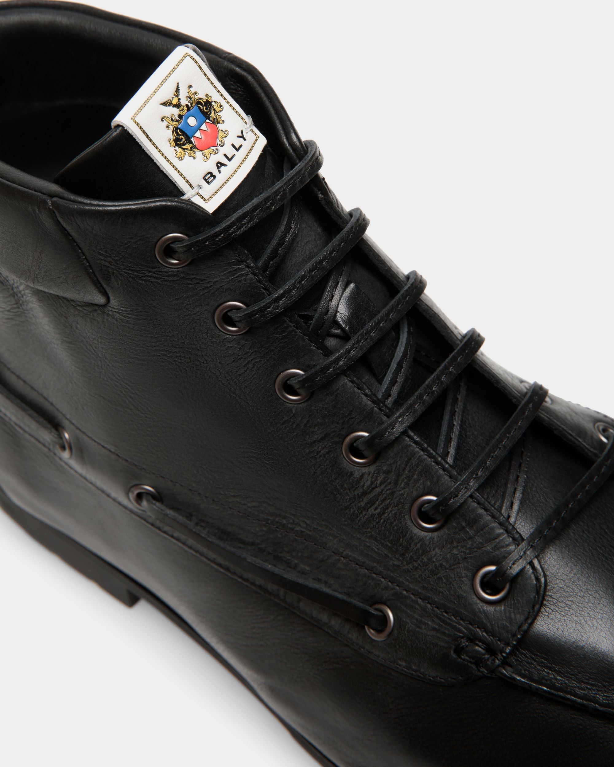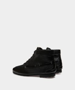 Singular and contemporary, this Plume bootie in black buffalo leather unites the classic style of a boat shoe with the silhouette of an ankle boot. The upper is combined with the rubber sole via reverse Goodyear construction, a hand-worked method that delivers exceptional flexibility and lightness.