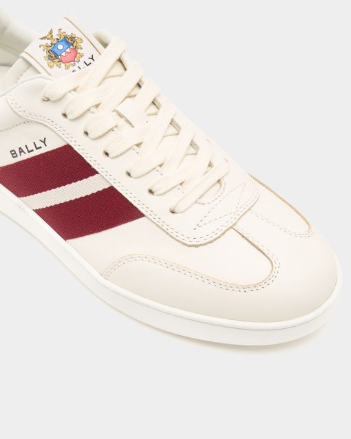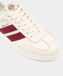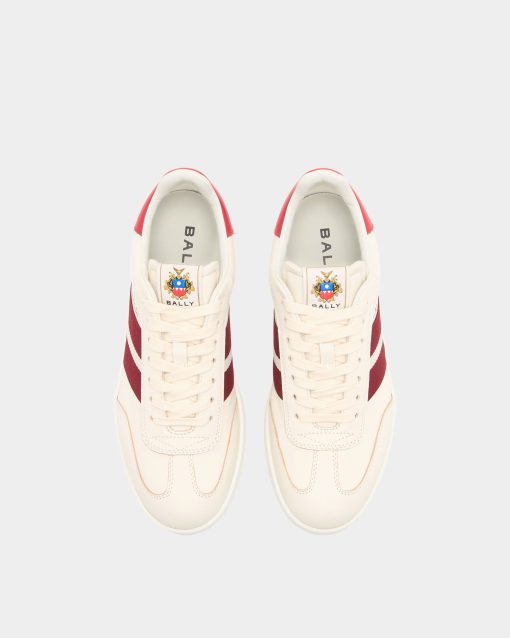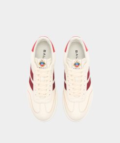 This lace-up Retro Crest sneaker in calfskin is characterized by a timeless Ivory and red colorway, enriched by a leather Bally Crest label for an iconic note. The rubber cup sole ensures all-day comfort.