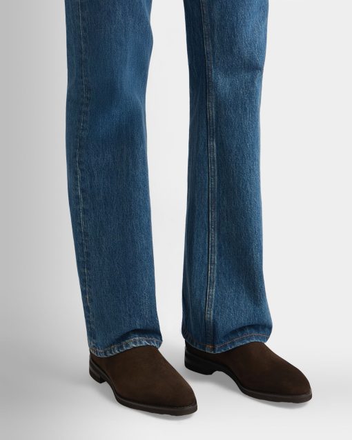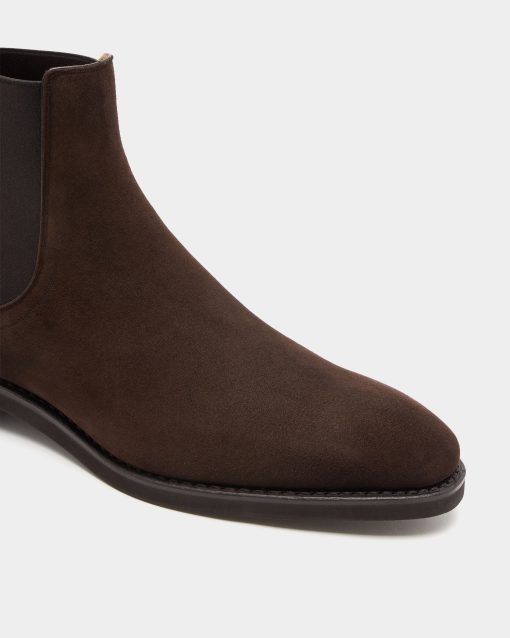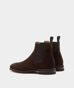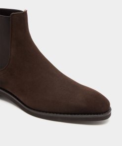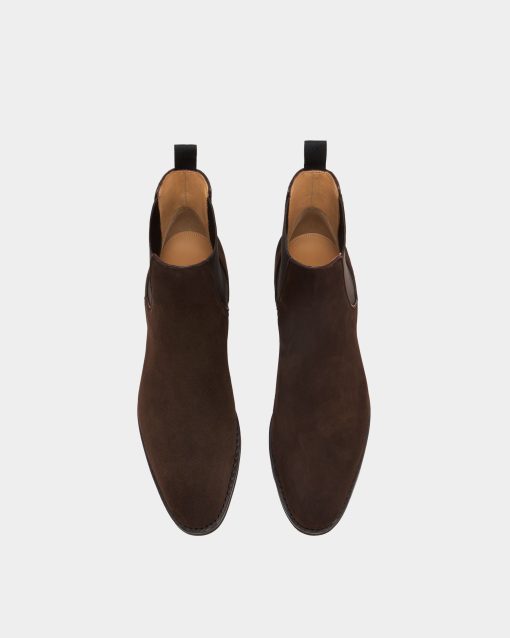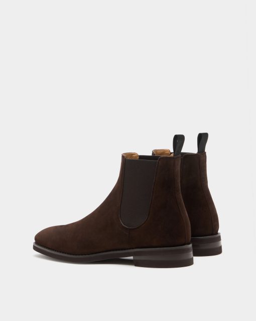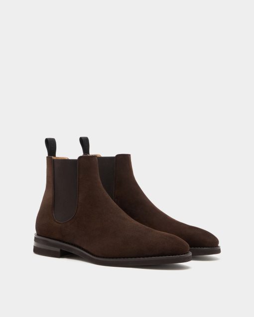 From the Scribe Un family, this almond-toe bootie in Ebano suede is a simple expression of meticulous Bally craftsmanship, requiring over 200 steps to complete each shoe. Elasticated panels at the ankles, a rear pull tab with the Bally logo and a hand-polished toe cap define this classic Chelsea style.