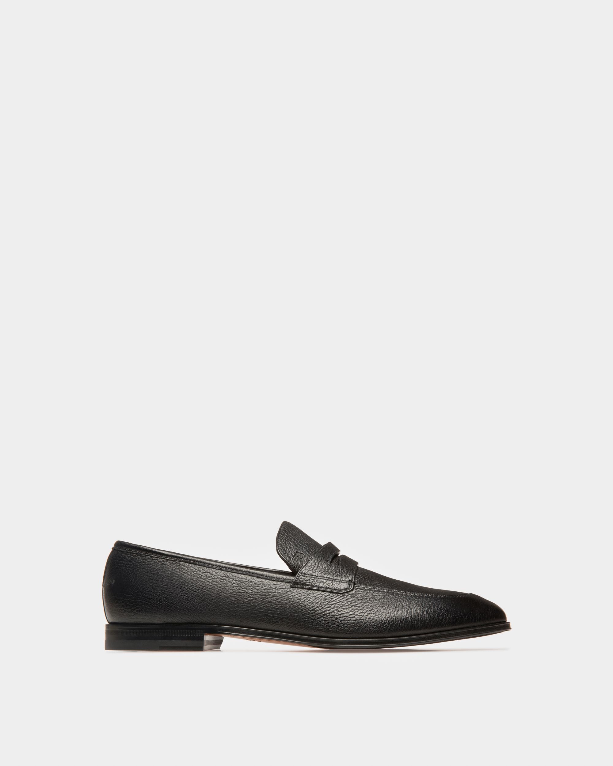 Designed in Bally’s grained deer leather, the black Webb penny loafer is a classic men’s shoe with a reimagined vigour. A classic shape employing Blake Flex construction, these Swiss-made men’s loafers are a ment for any gentleman’s wardrobe courtesy of the expertly handled leather and attention to detail, including a signature leather sole.