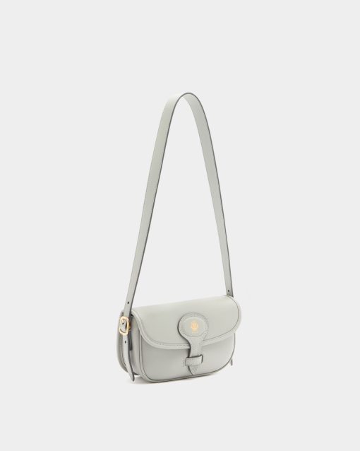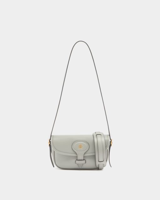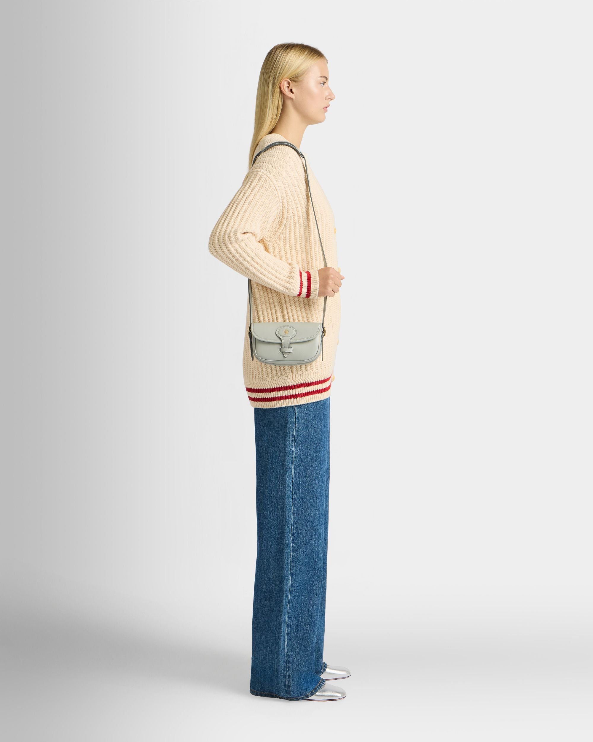 This Beckett minibag in Glacier grey leather has a compact silhouette embellished by a gold-tone foil Bally Crest on the flap closure. A choice between two straps offers crossbody and shoulder portability.