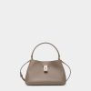 This compact Deco tote bag in Andorra calfskin is trimmed by a metal plaque, a simple signifier that recalls the Bally Ribbon. Top handles and a removable shoulder strap offer multiple carry options.