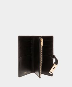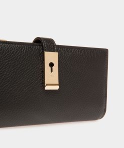 Bally Women’s Lock Me Long Wallet In Black Grained Leather | Black