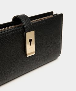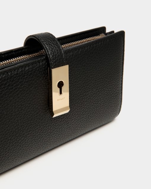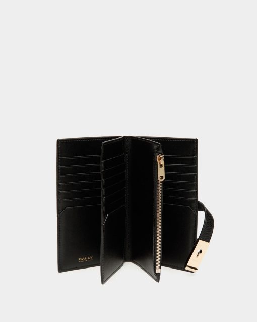 Bally Women’s Lock Me Long Wallet In Black Grained Leather | Black