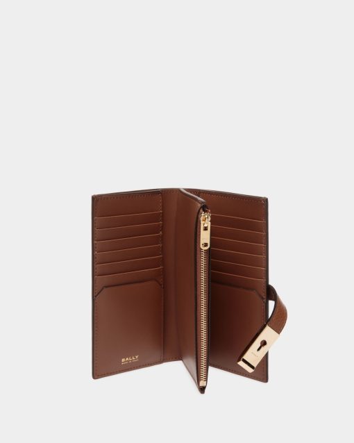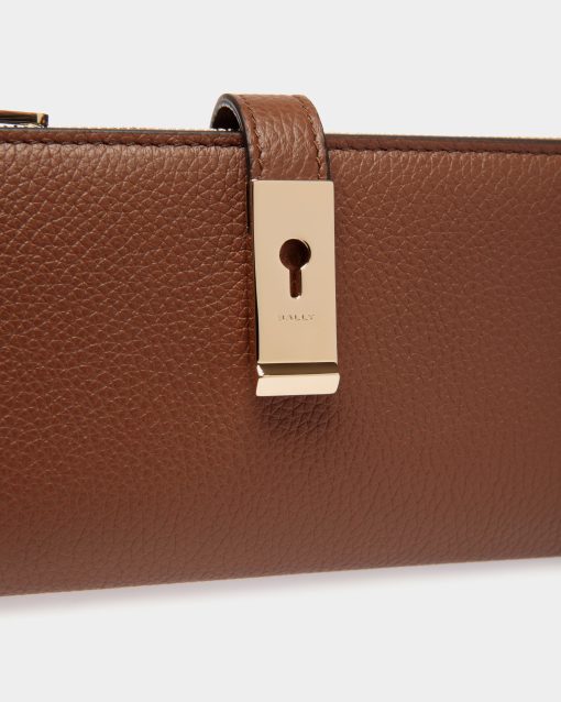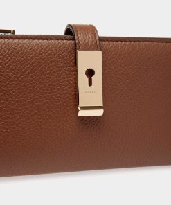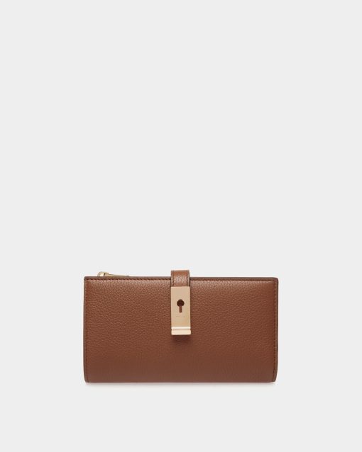 Bally Women’s Lock Me Long Wallet In Brown Grained Leather | Brown