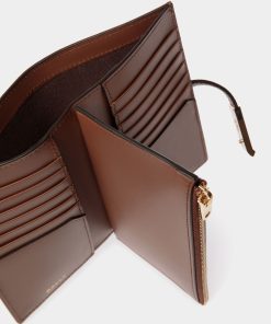Crafted in supple brown grained leather, this Lock Me long wallet features internal card slots, a cash pocket and a zipped coin purse. It fastens via a gold-tone snap button closure with the iconic Lock Me hardware.