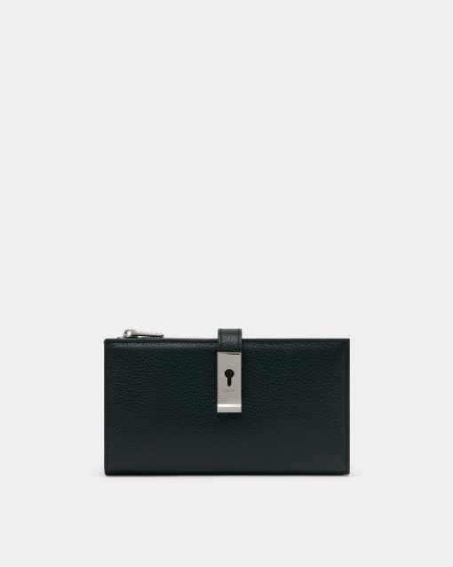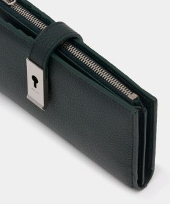 Bally Women’s Lock Me Long Wallet In Marble Green Grained Leather | Green