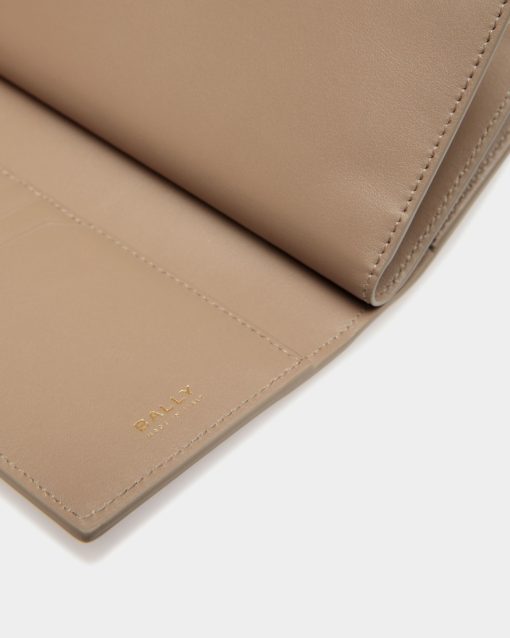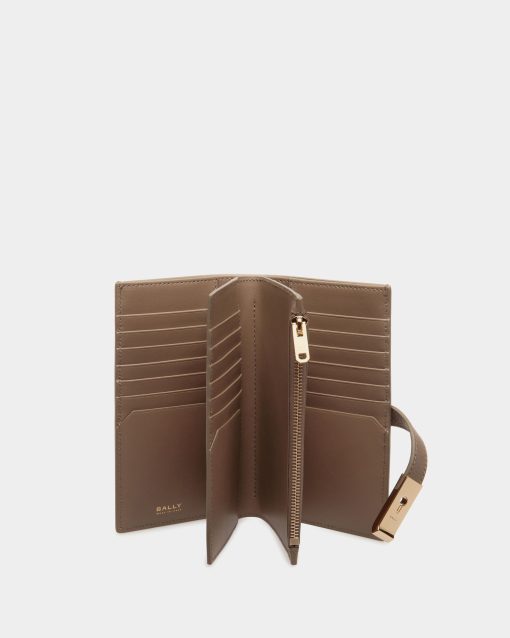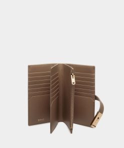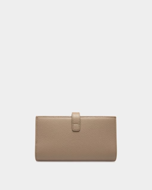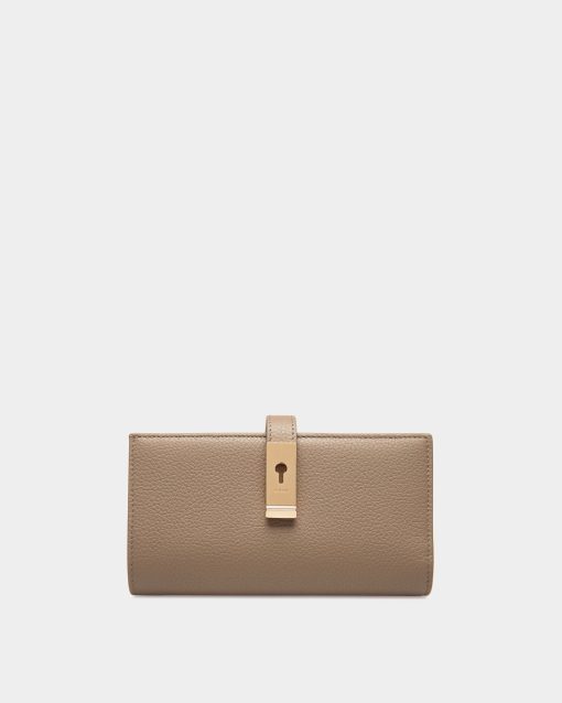 Bally Women’s Lock Me Long Wallet In Taupe Grained Leather | Brown