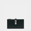 In supple grained calfskin, this Lock Me long wallet has multiple compartments and a snapped strap with gold-tone metal Lock Me hardware.