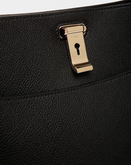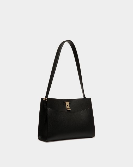 Bally Women’s Lock Me Shoulder Bag In Black Grained Leather | Black