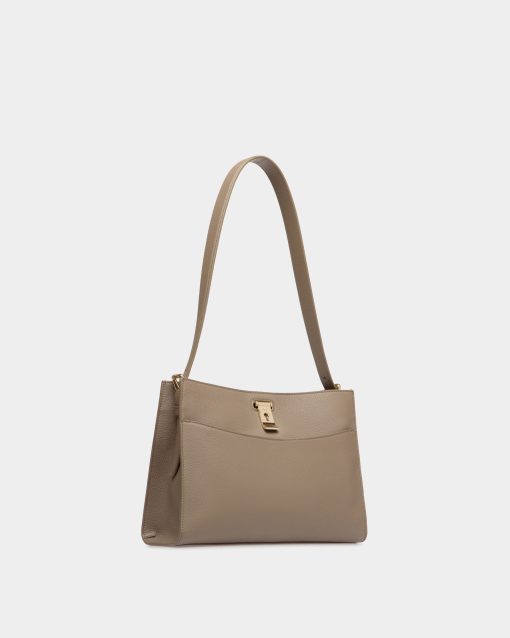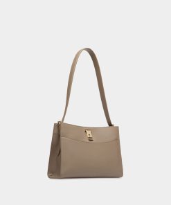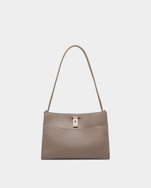 Be the first to review “Bally Women’s Lock Me Shoulder Bag In Taupe Grained Leather | Brown” Cancel reply