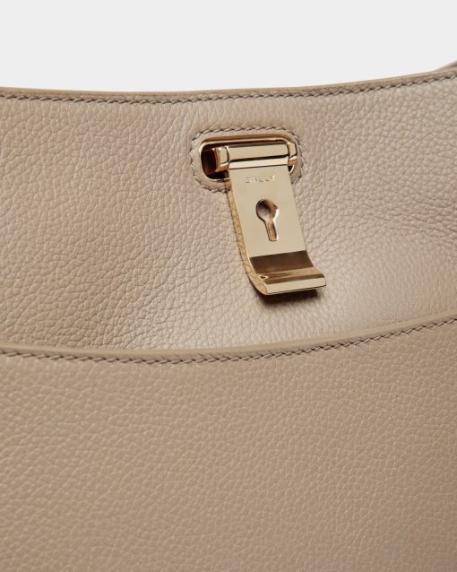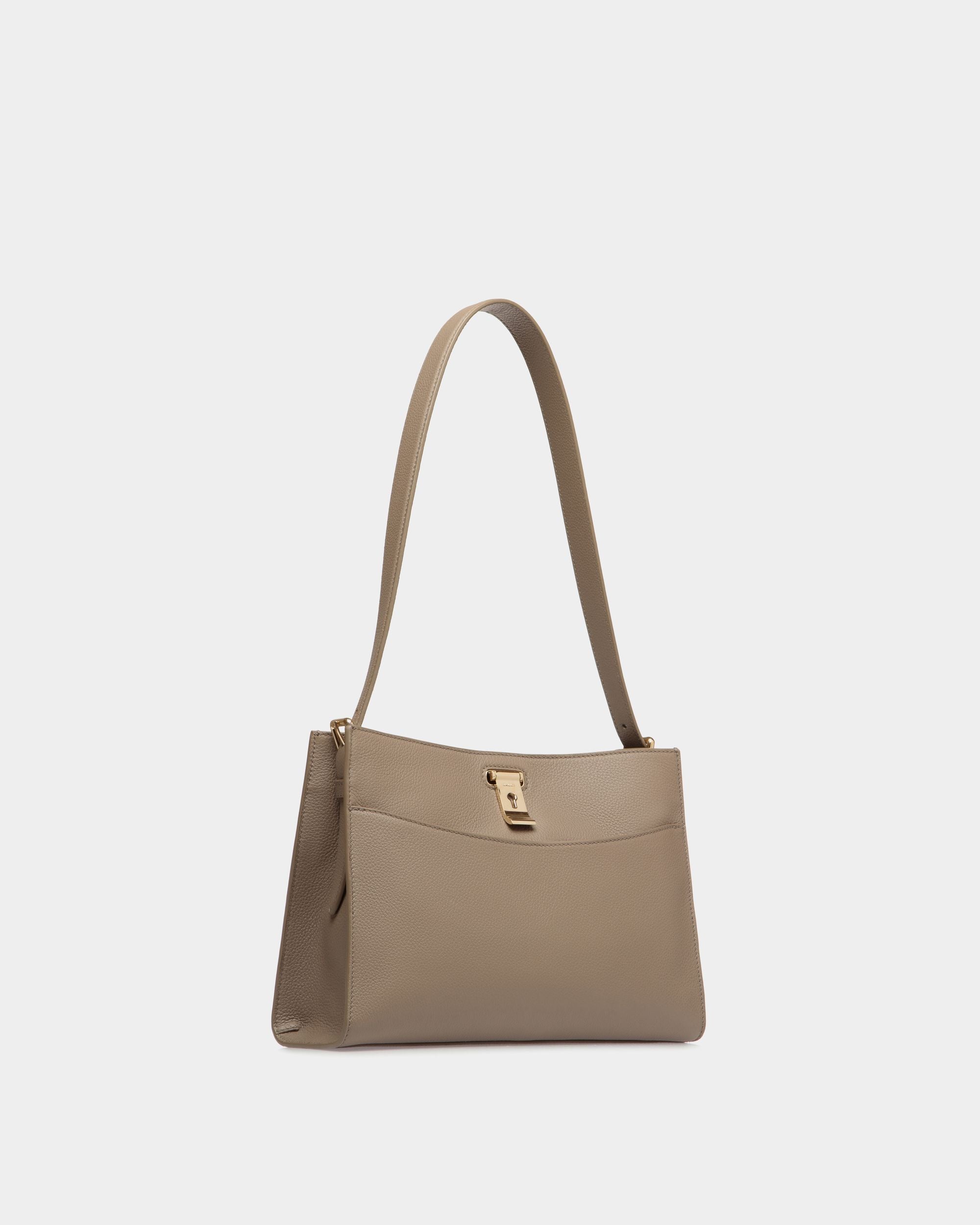 Bally Women’s Lock Me Shoulder Bag In Taupe Grained Leather | Brown