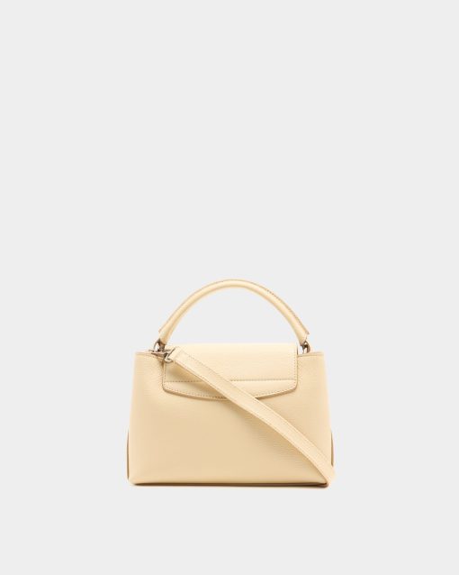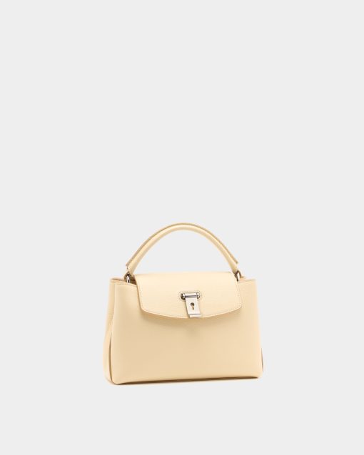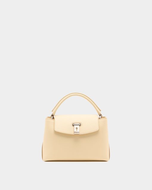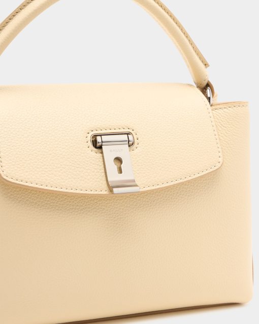 Bally Women’s Lock Me Small Top Handle Bag In Ginger Grained Leather | Beige