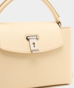 Be the first to review “Bally Women’s Lock Me Small Top Handle Bag In Ginger Grained Leather | Beige” Cancel reply