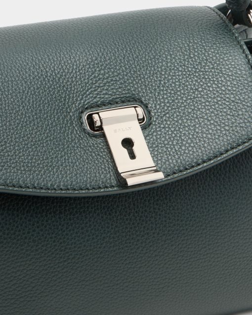 Bally Women’s Lock Me Small Top Handle Bag In Marble Green Grained Leather | Green
