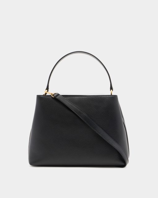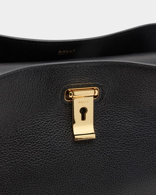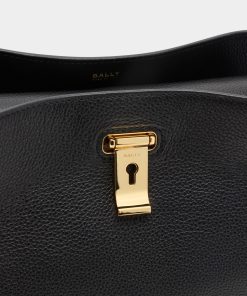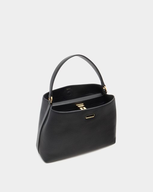 Bally Women’s Lock Me Top Handle Bag In Black Grained Leather | Black