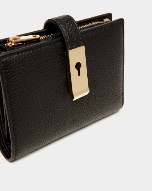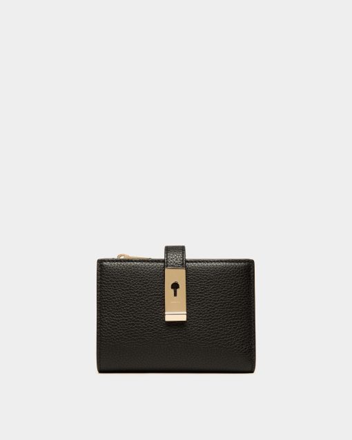 Bally Women’s Lock Me Wallet In Black Grained Leather | Black