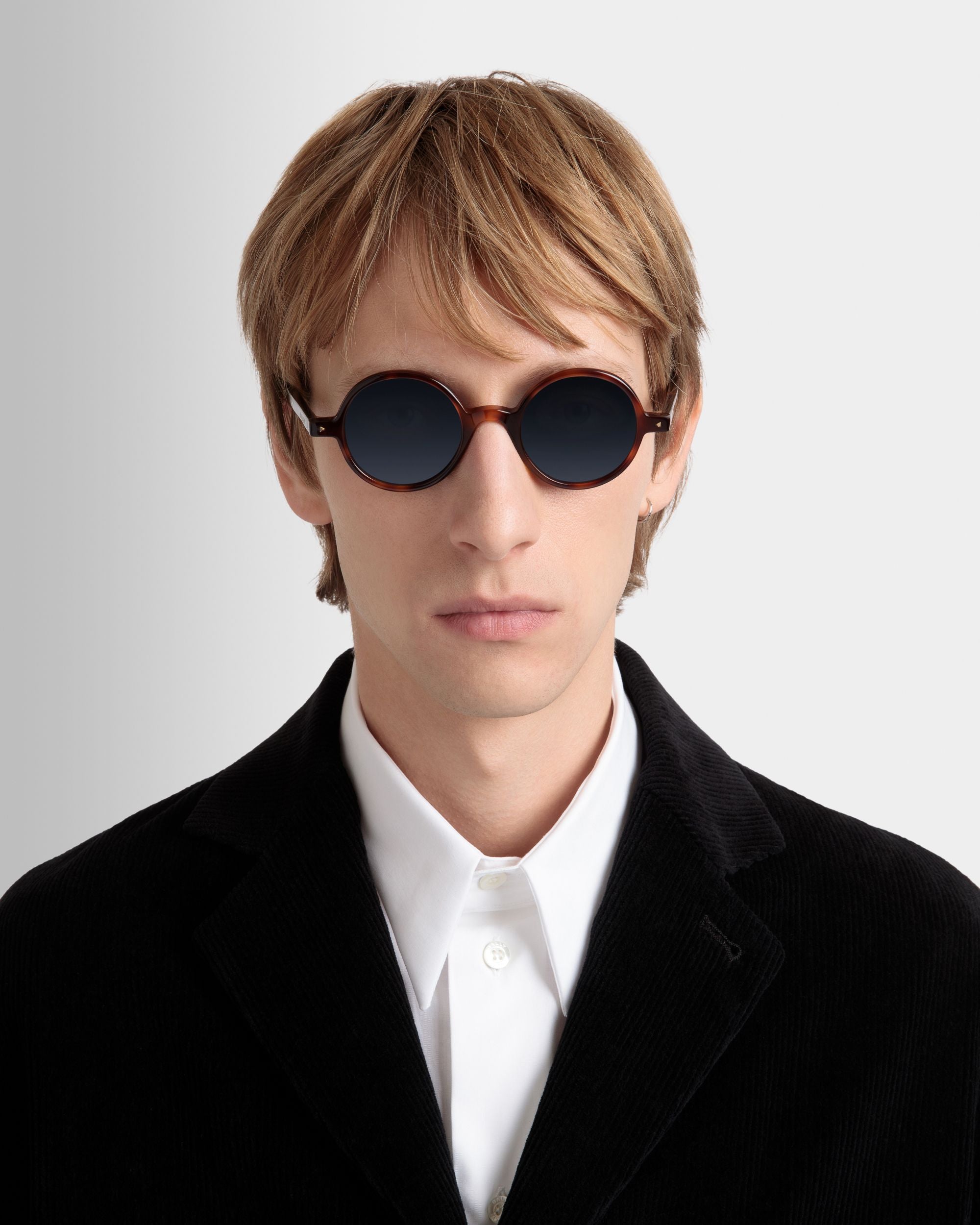 The Otto sunglasses are crafted into perfectly round acetate frames, balanced in their proportions as they embrace glass lenses. Minimalist geometric touches reveal attention to detail while upholding a sleek, essential aesthetic.