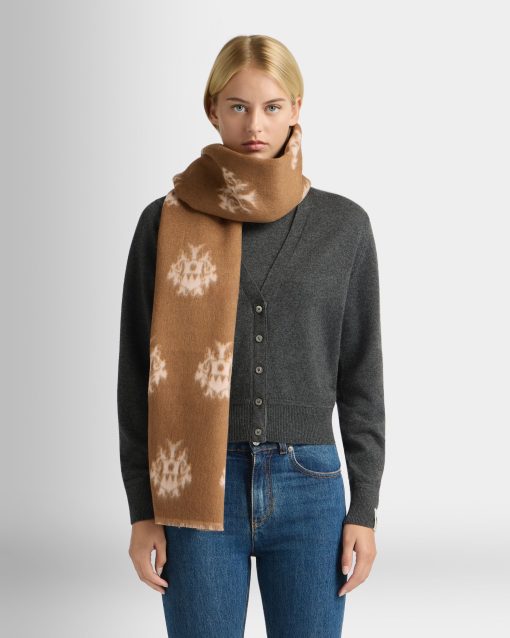 Bally Women’s Scarf With A Crest Motif In Brown And Dusty Petal Wool | Multicolor