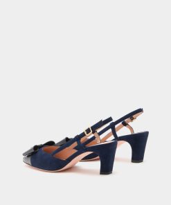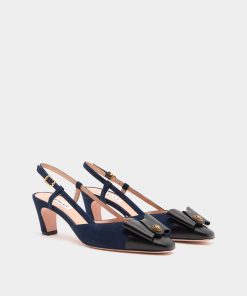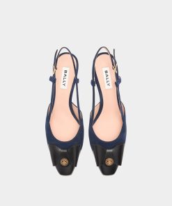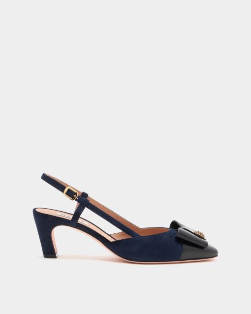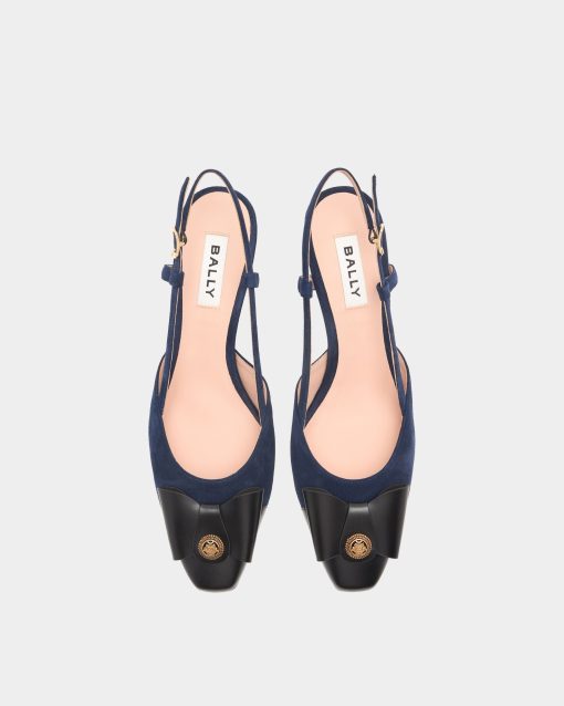 This elegant B-Bow slingback pump is meticulously crafted in navy blue suede. The black leather toe cap is embellished by the Bally B-Bow detail with a reimagined archival Crest at the center.