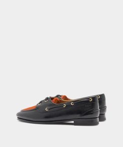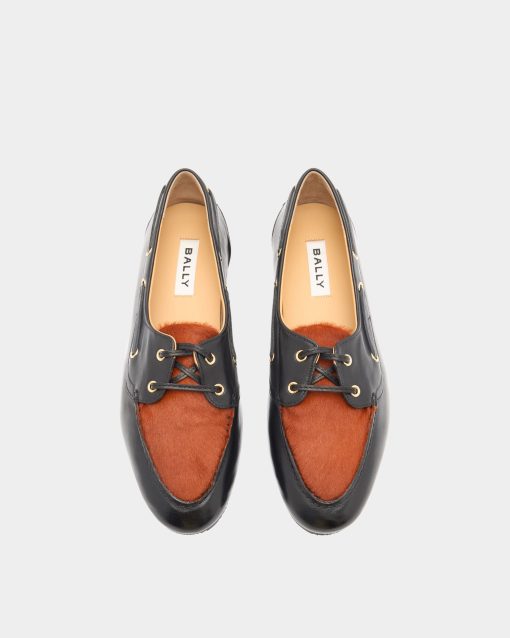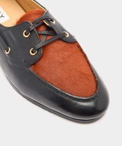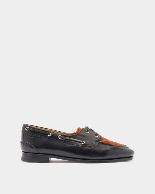 This Plume moccasin showcases the timeless style of a boat shoe, united with Bally’s artisanal craftsmanship for a light-as-a-feather feel. The red pony hair insert on the vamp brings a fresh twist to the black buffalo leather upper.