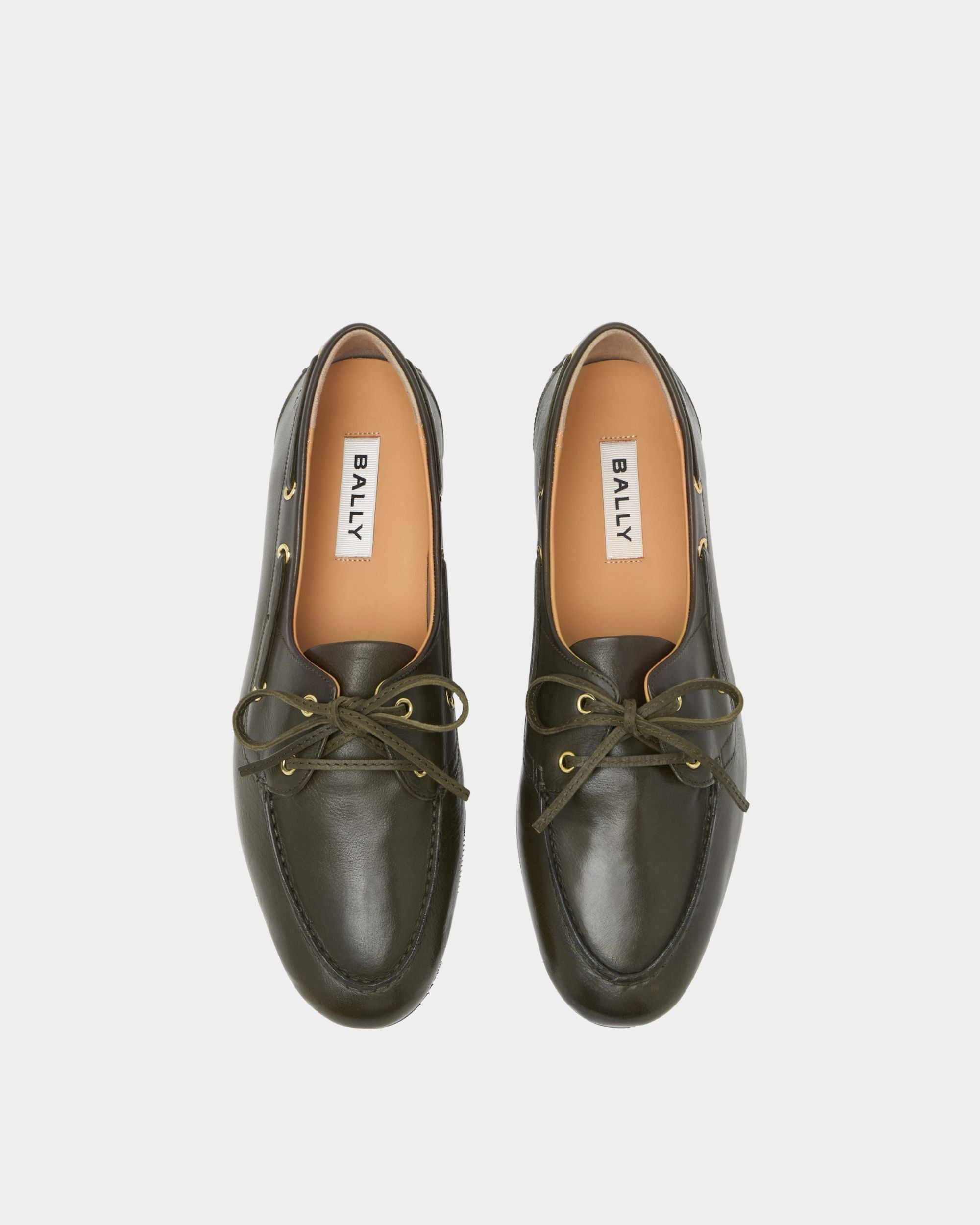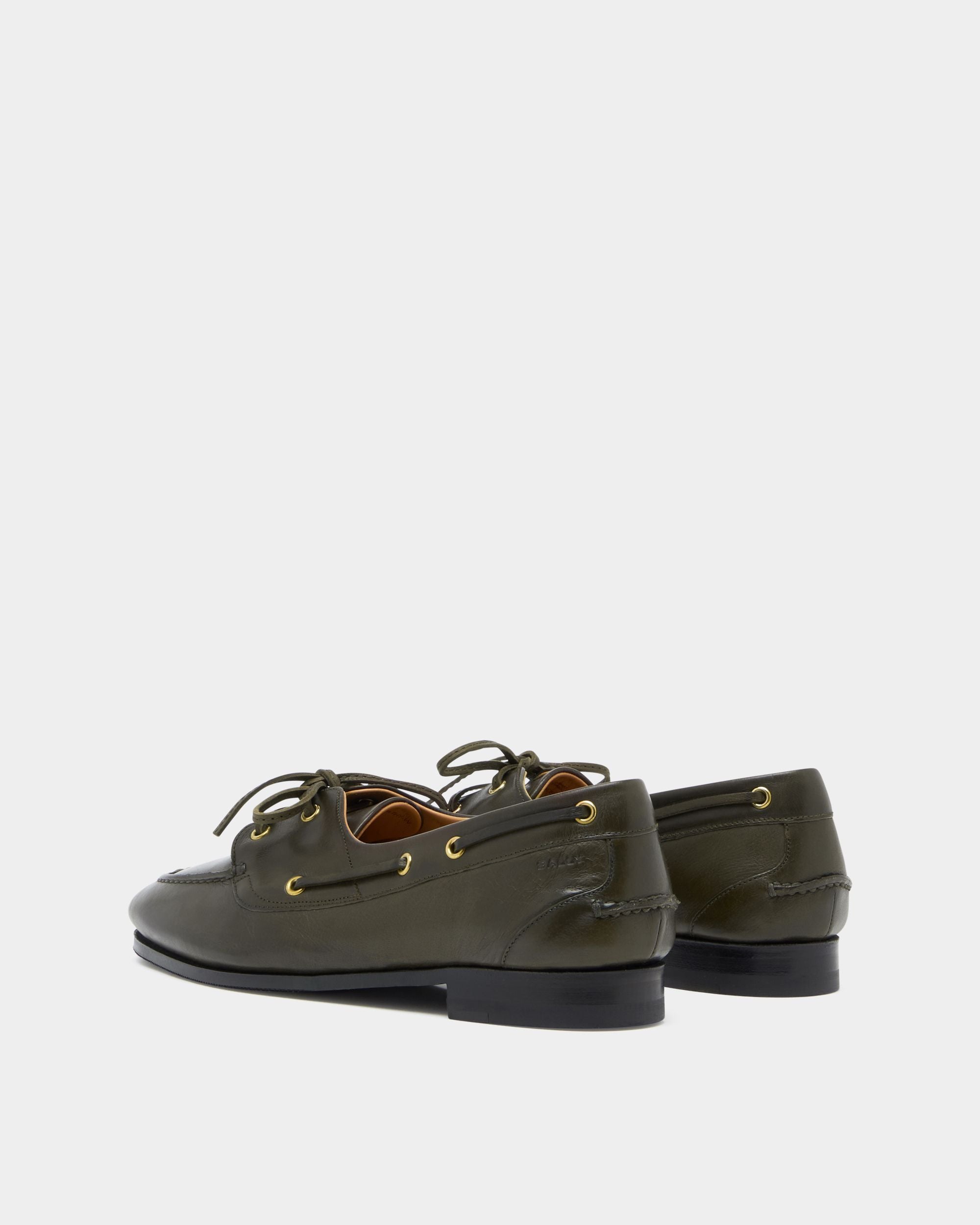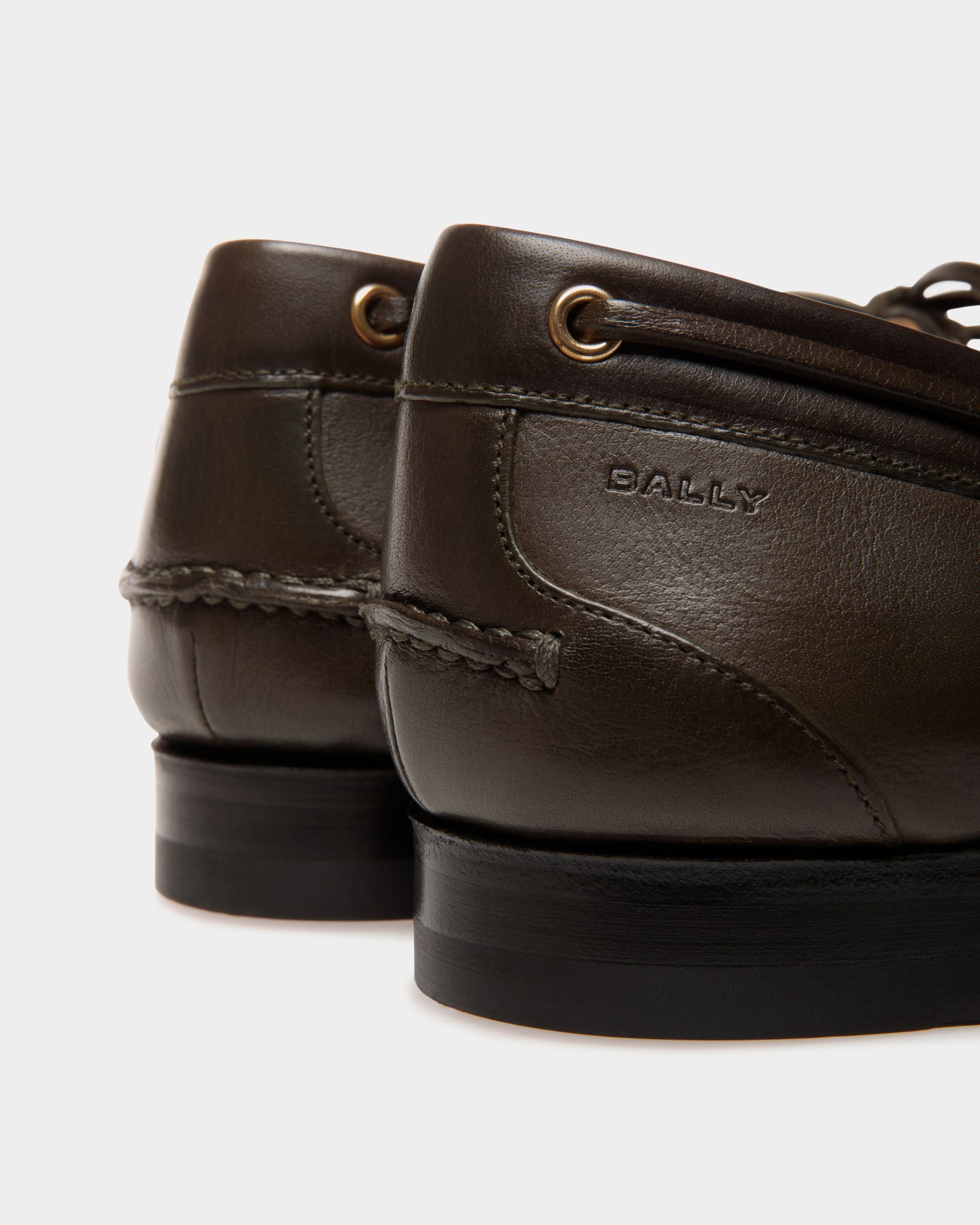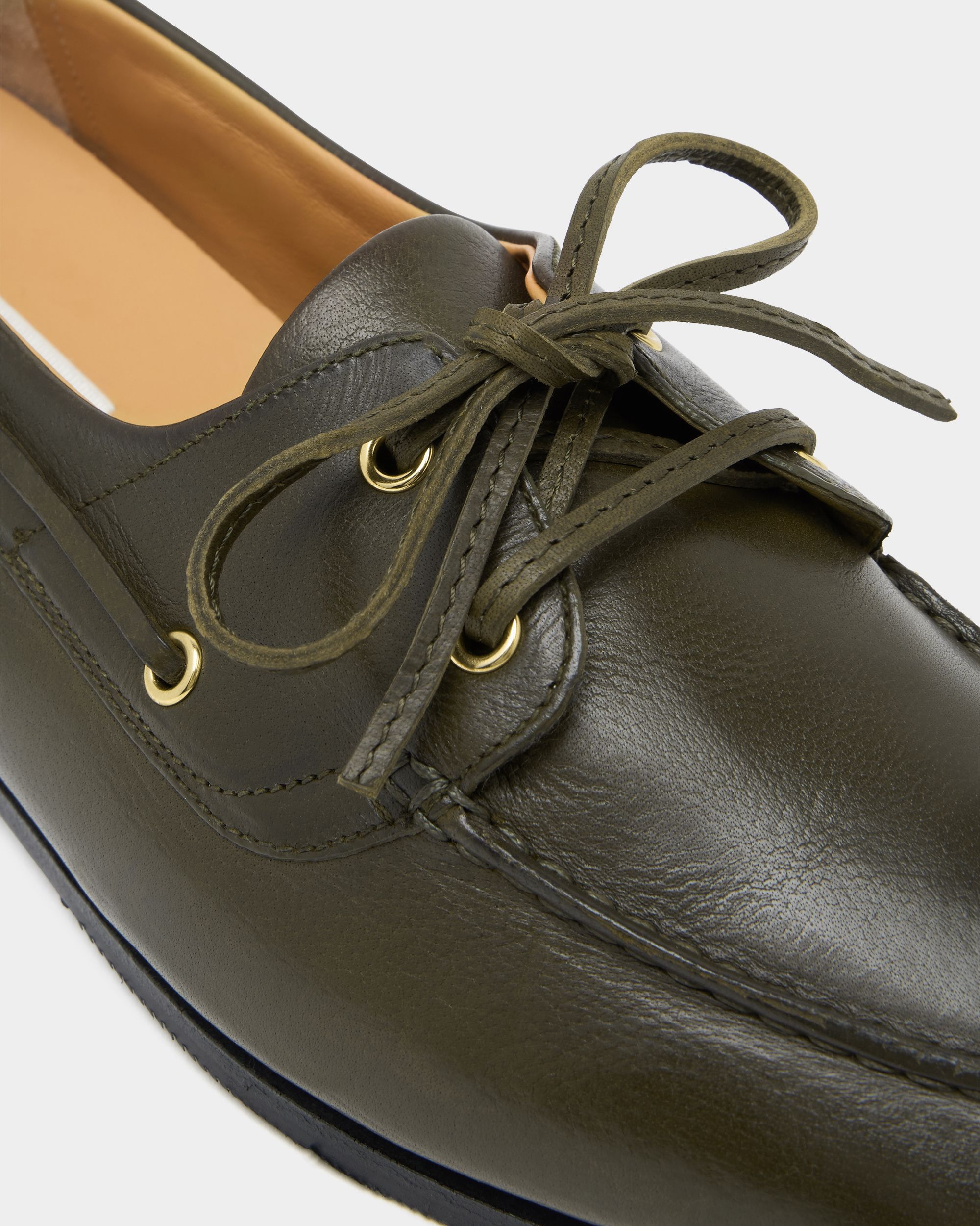 Bally’s interpretation of a boat shoe, the Plume moccasin is a masterpiece of comfort, flexibility and lightness. This step-in style boasts artisanal Goodyear Reverse construction, in which the lining is sewn around the welt inside-out, like a glove, before being stitched to the military green buffalo leather upper.
