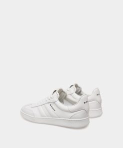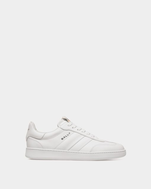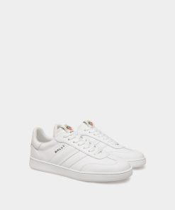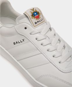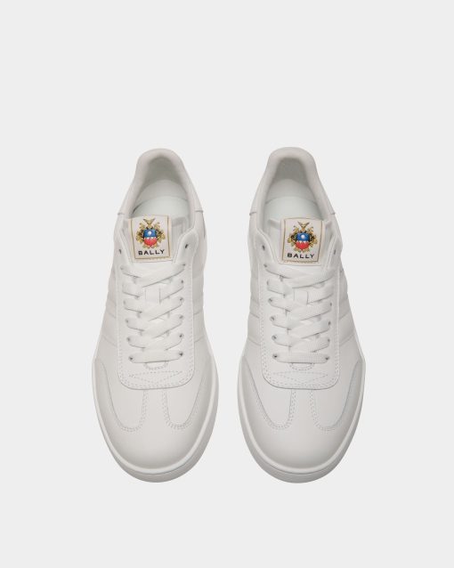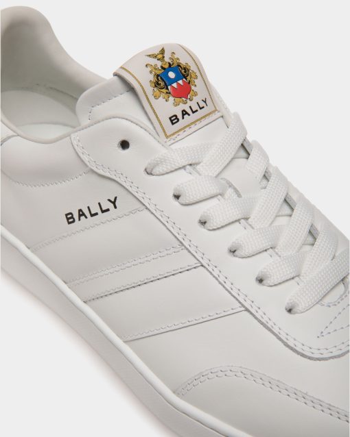 This Retro Crest sneaker in white leather unites a quintessential tennis shoe silhouette with iconic Bally signifiers. A meticulously crafted tone-on-tone padded Ribbon is seen to the side, and a Bally Crest label finishes the tongue on this low-top lace-up style.