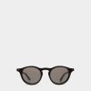 The oversize round lenses of the Ursula sunglasses are bold, curvaceous and iconic. Seen here in black acetate with black lenses, their sculptural quality is complemented by the equally voluptuous temples, trimmed by the Bally logo.