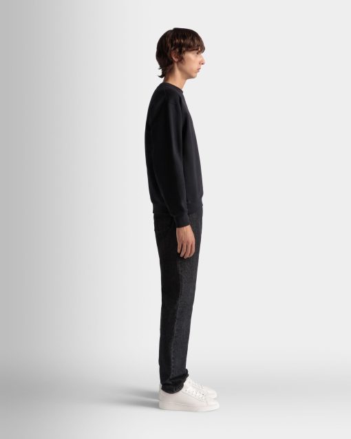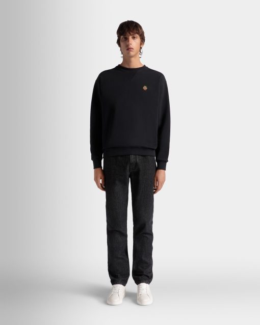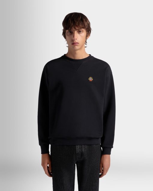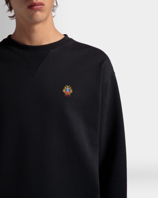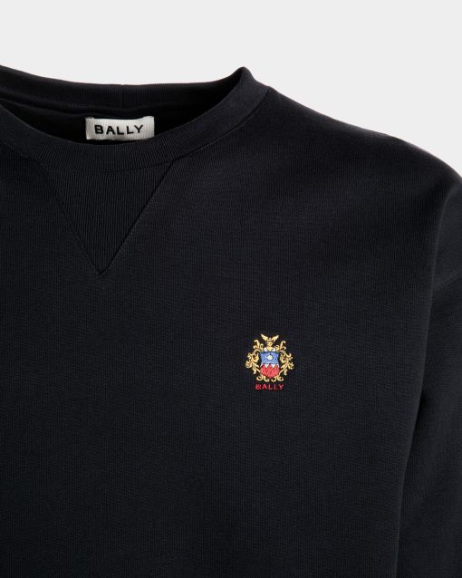 Men’s Crewneck Sweatshirt With A Bally Crest Logo In Navy Blue Cotton | Blue