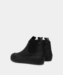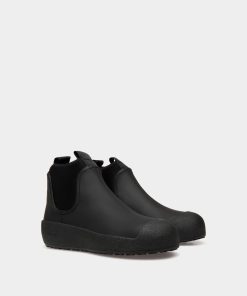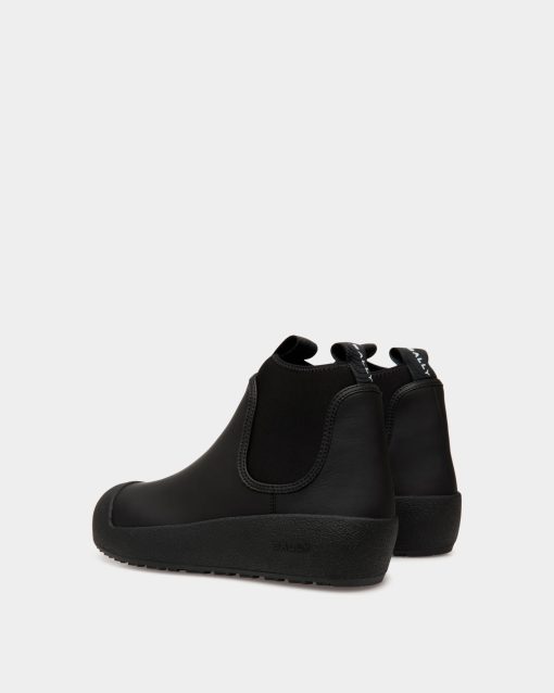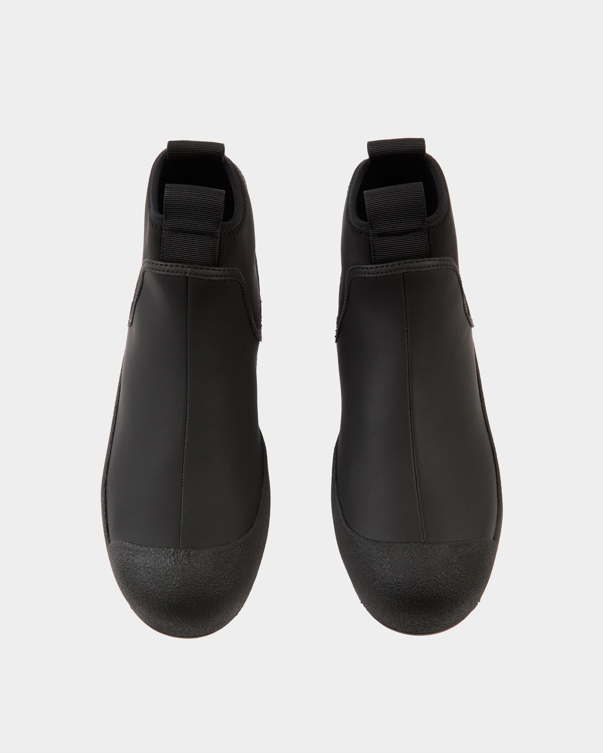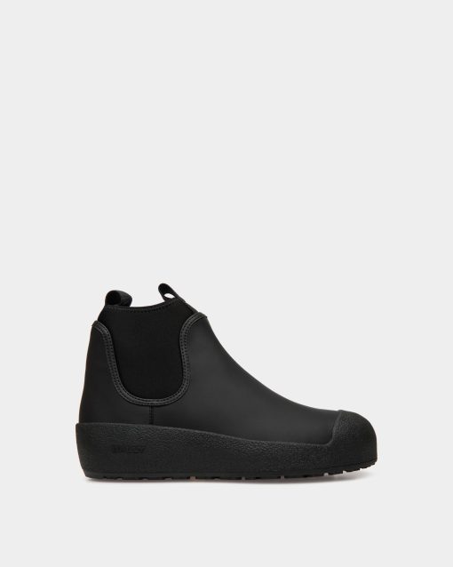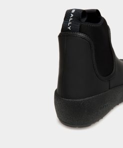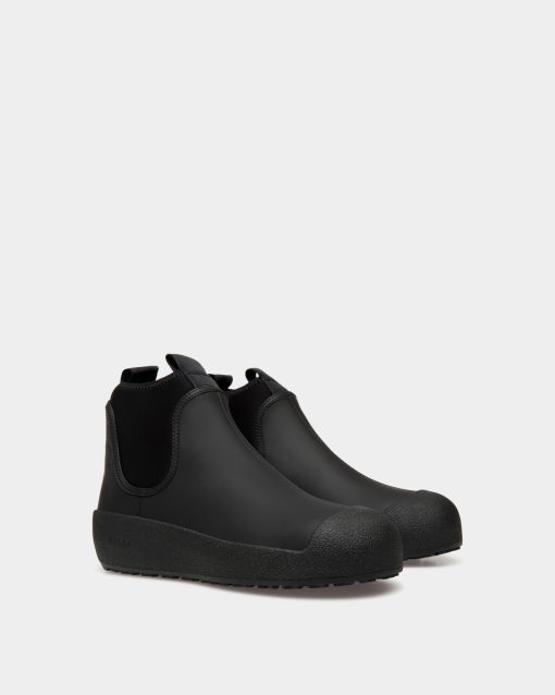 This Bally Curling bootie in black rubberized leather was inspired by an original style designed in the 1950s for the Swiss Olympic team. The arctic grip Vibram sole offers all-weather practicality in addition to a distinct aesthetic.