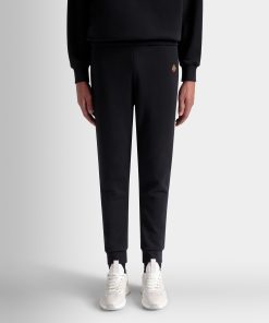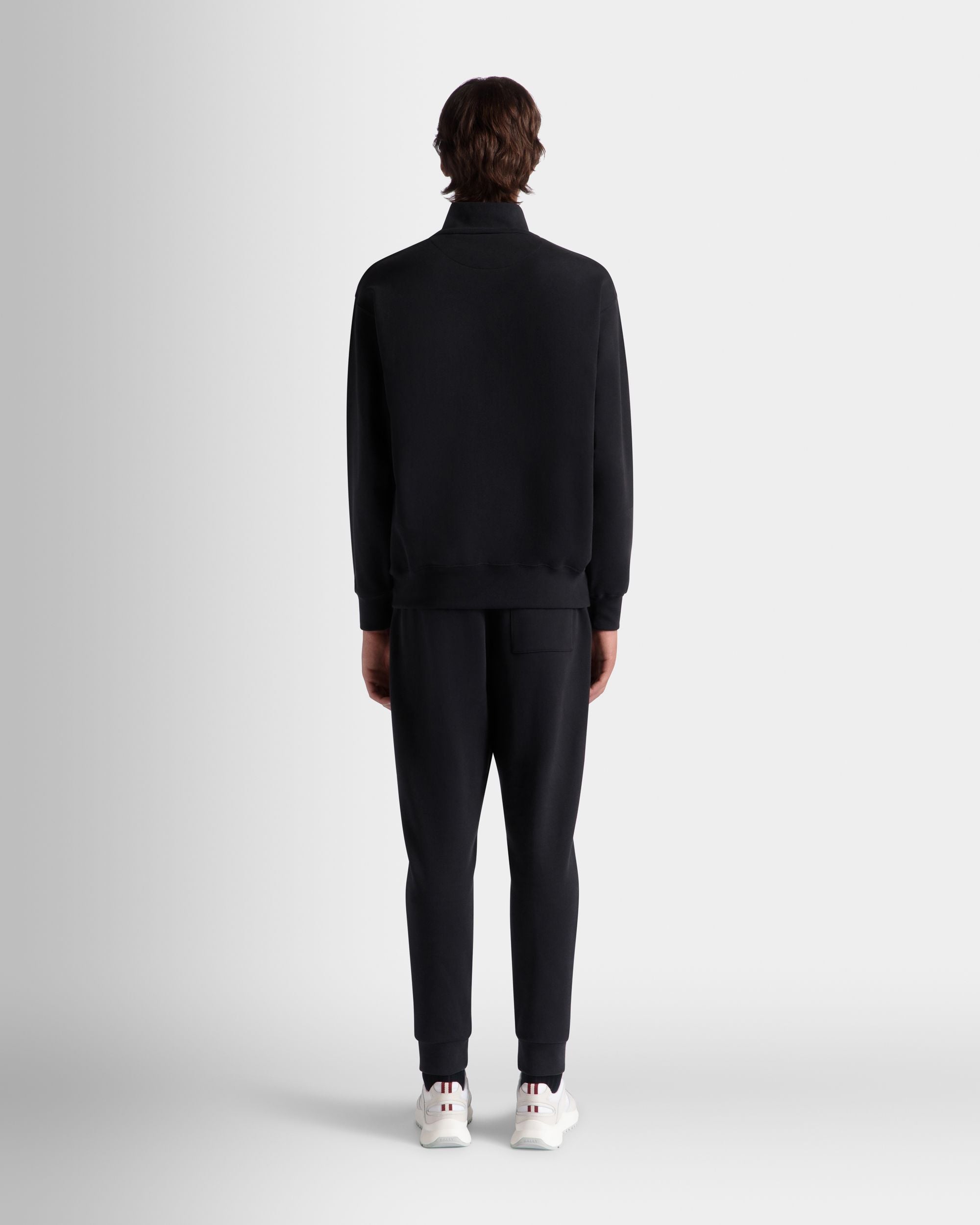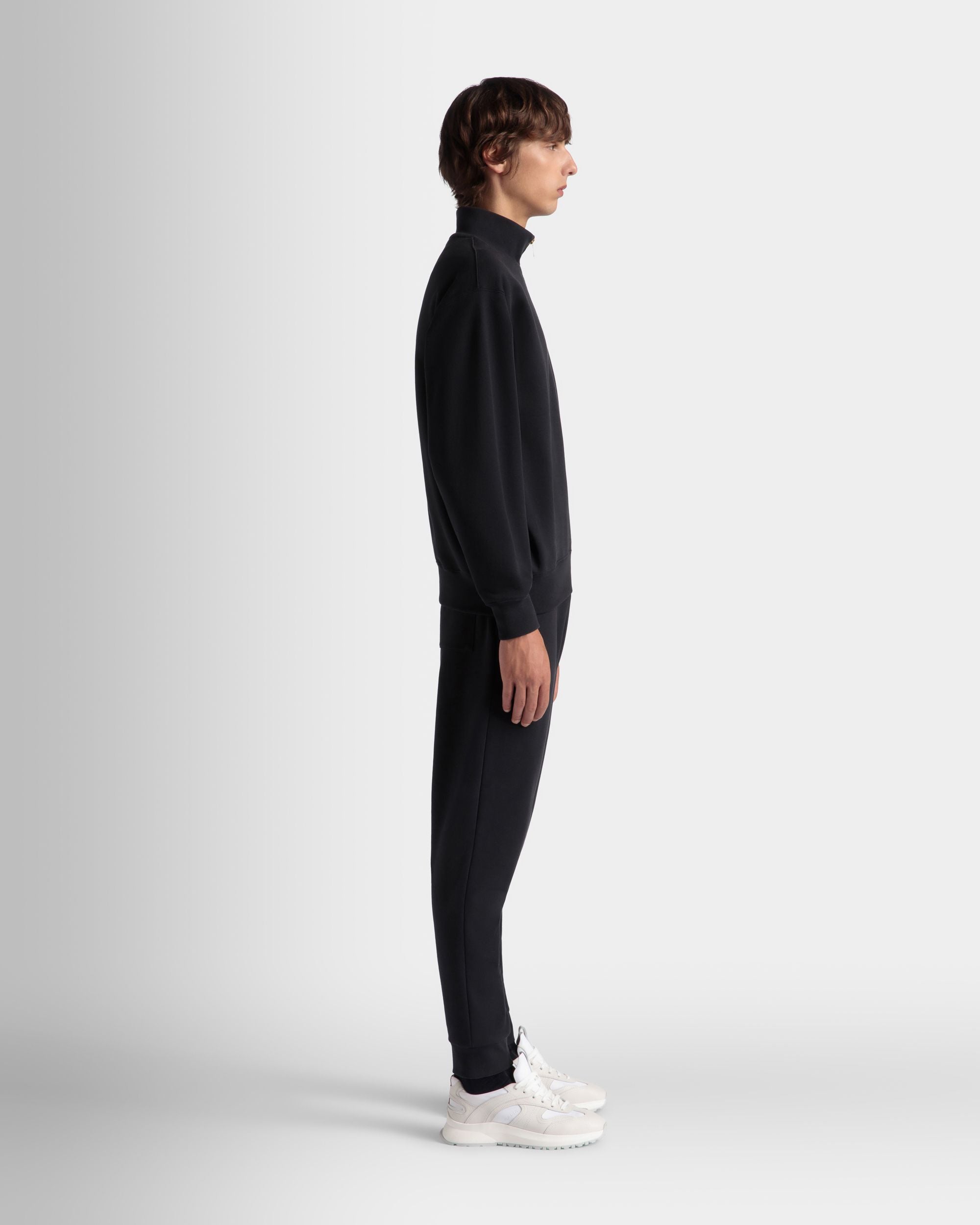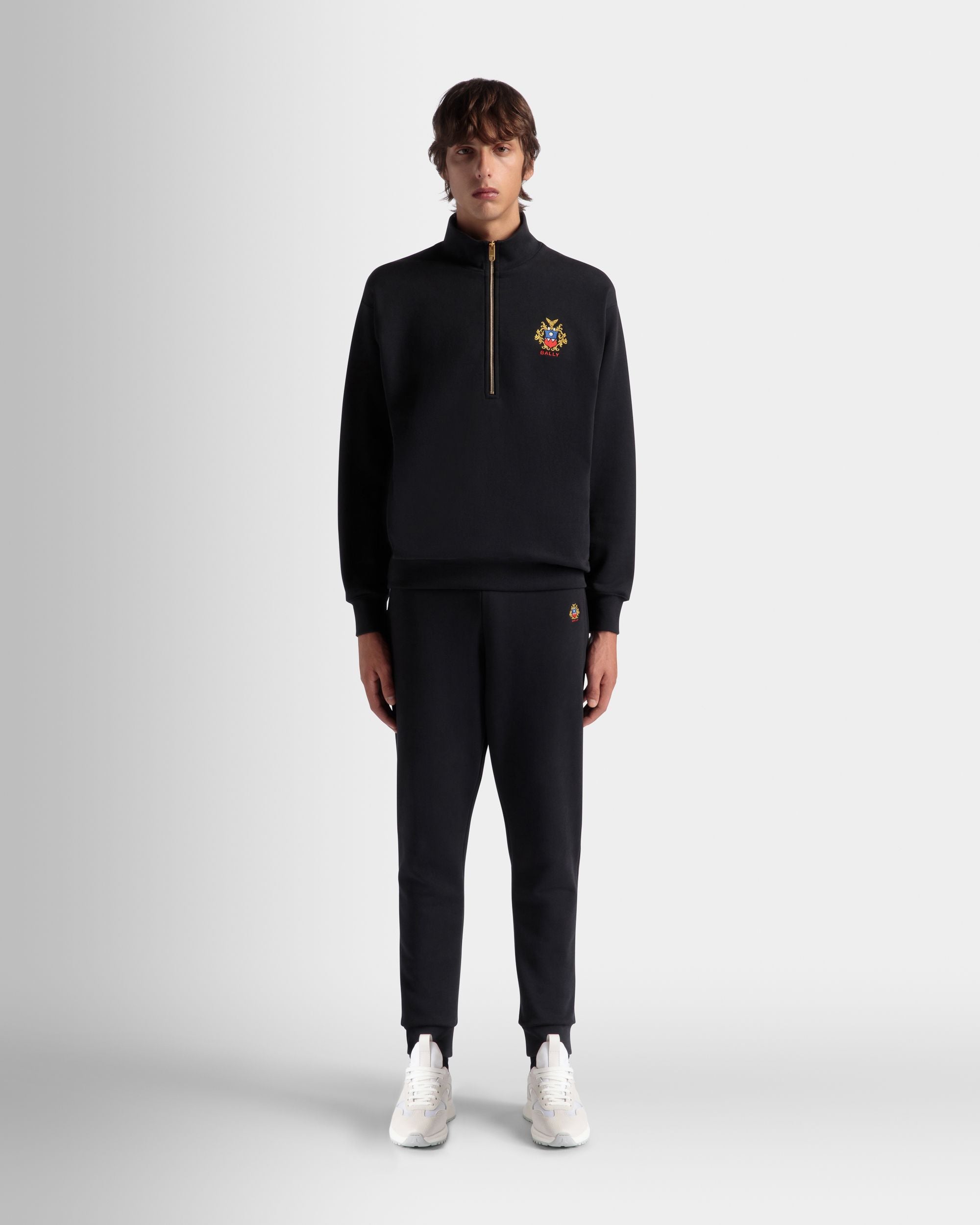 In soft knit cotton, these sweatpants are decorated by a finely embroidered Bally Crest on one hip and cuffs at the ankles. Two inset pockets are found at the hips, plus one patch pocket at the back.