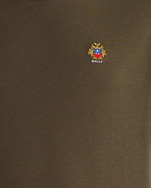 This military green t-shirt in soft knit cotton features a small Bally Crest embroidered on the chest.
