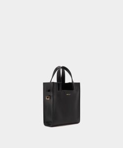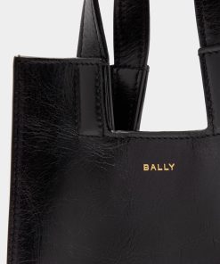 Women’s Easy Bally Small Tote Bag In Black Leather | Black