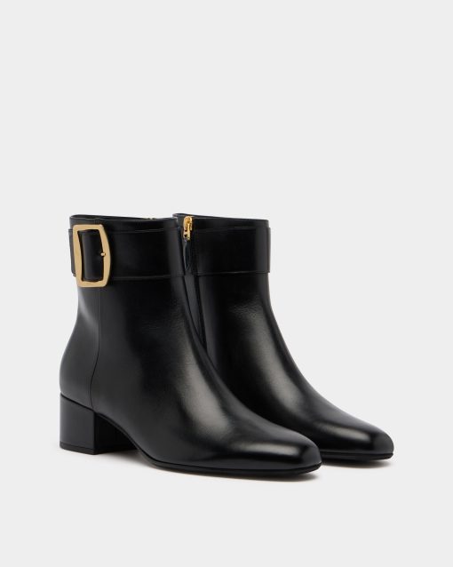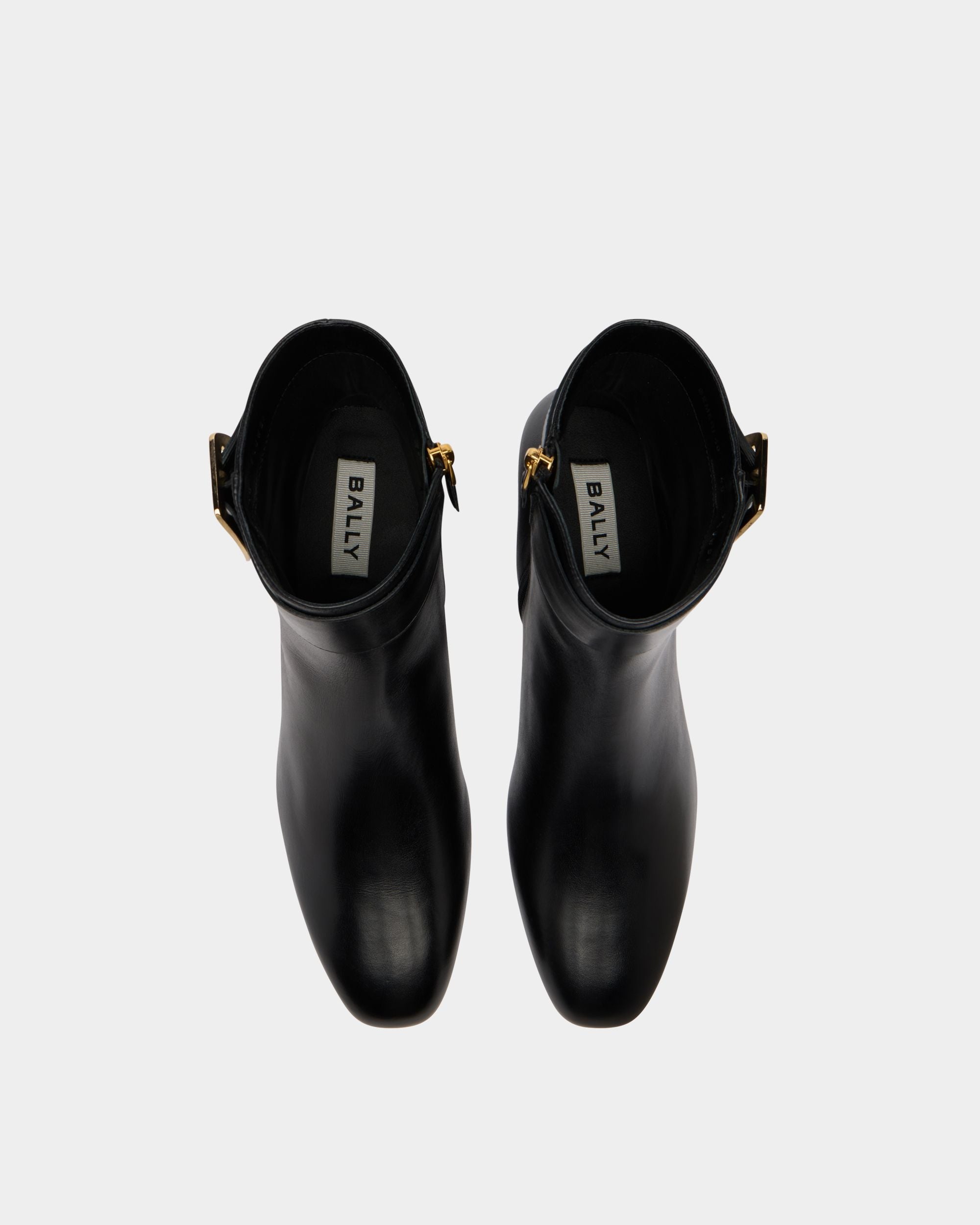 This Bally Boucle boot seamlessly blends the brand’s heritage and modern elements. Crafted in black calfskin with a semi-gloss finish, the timeless upper is embellished with a large metal buckle inspired by a detail from the Bally archives.