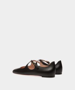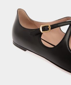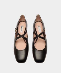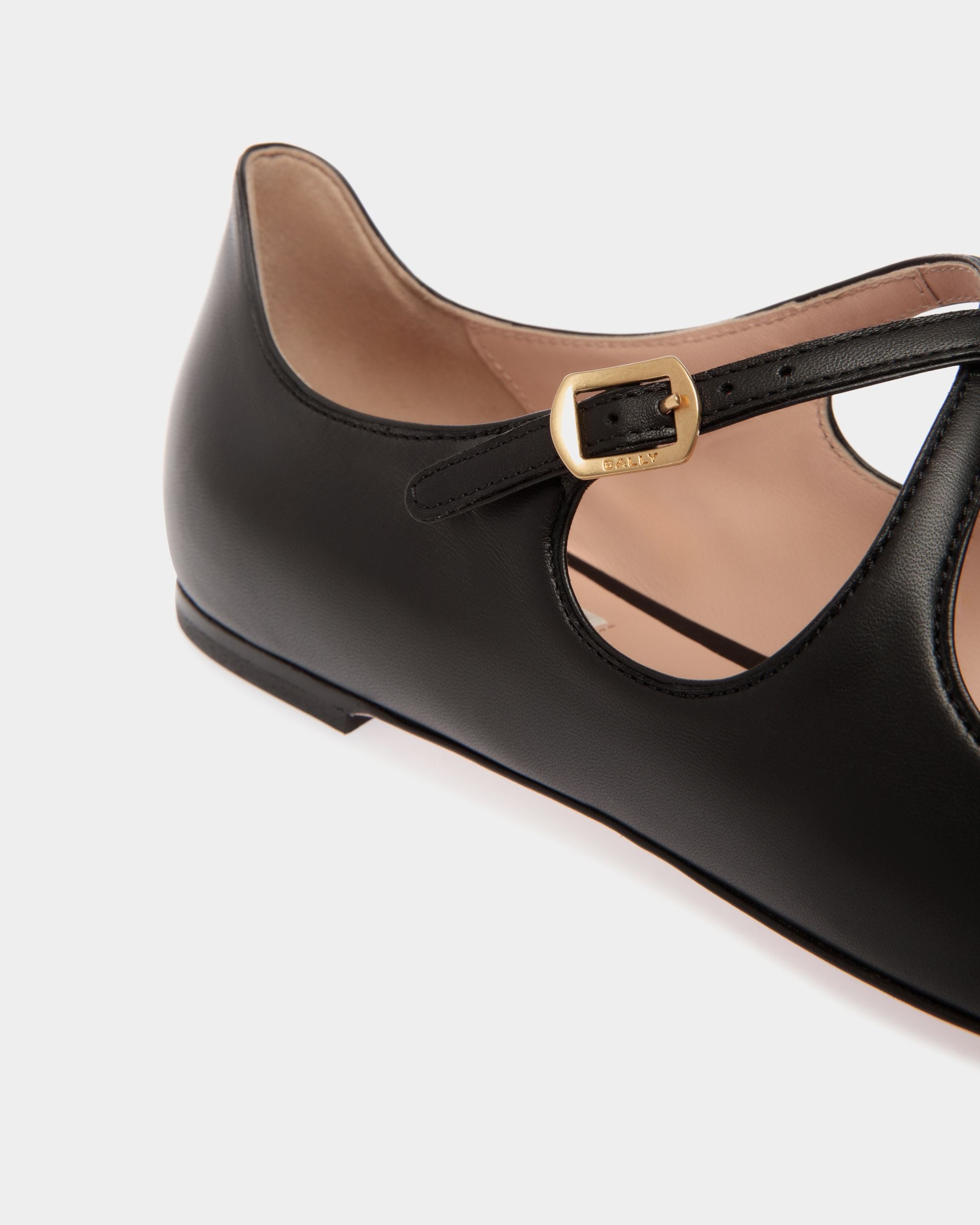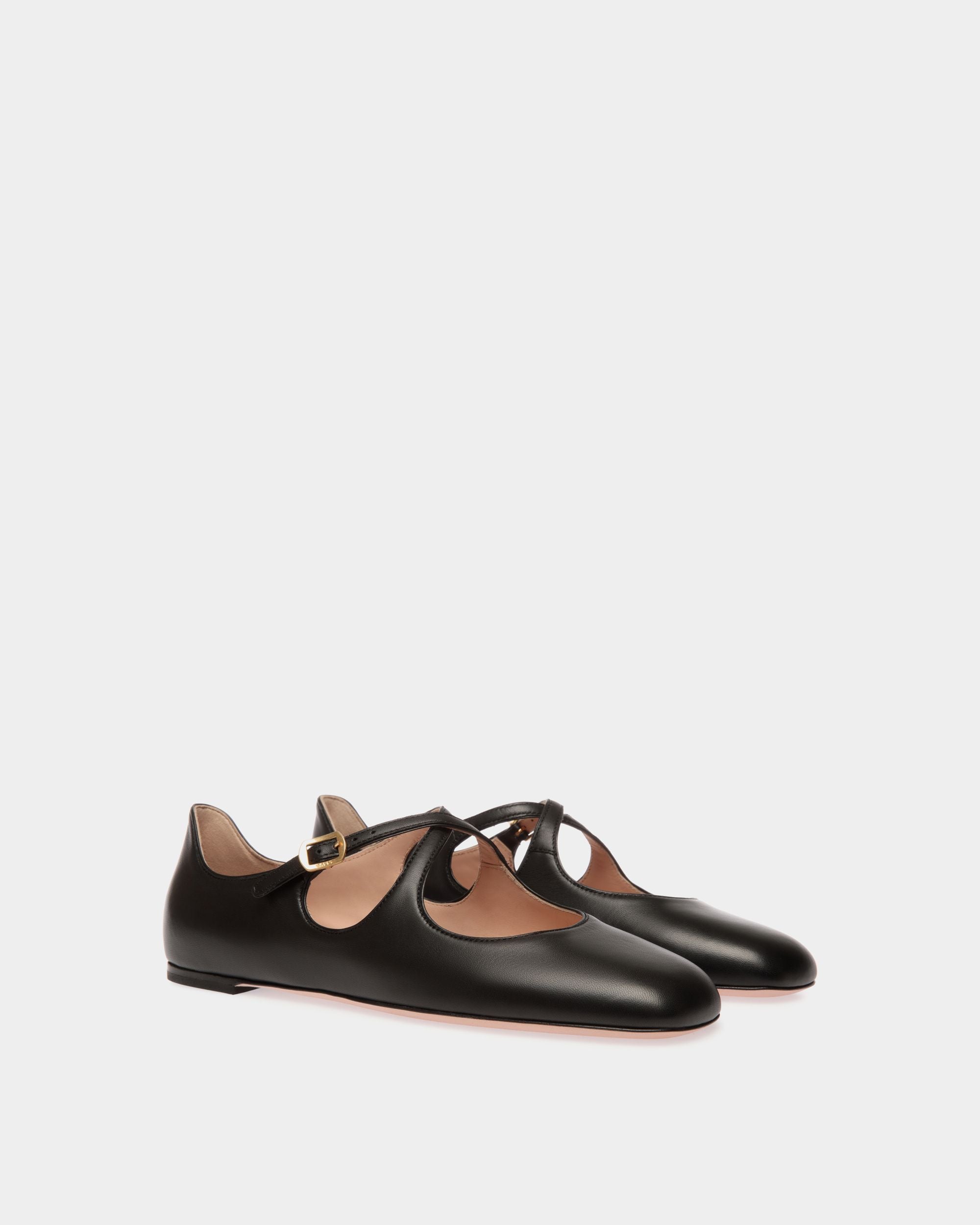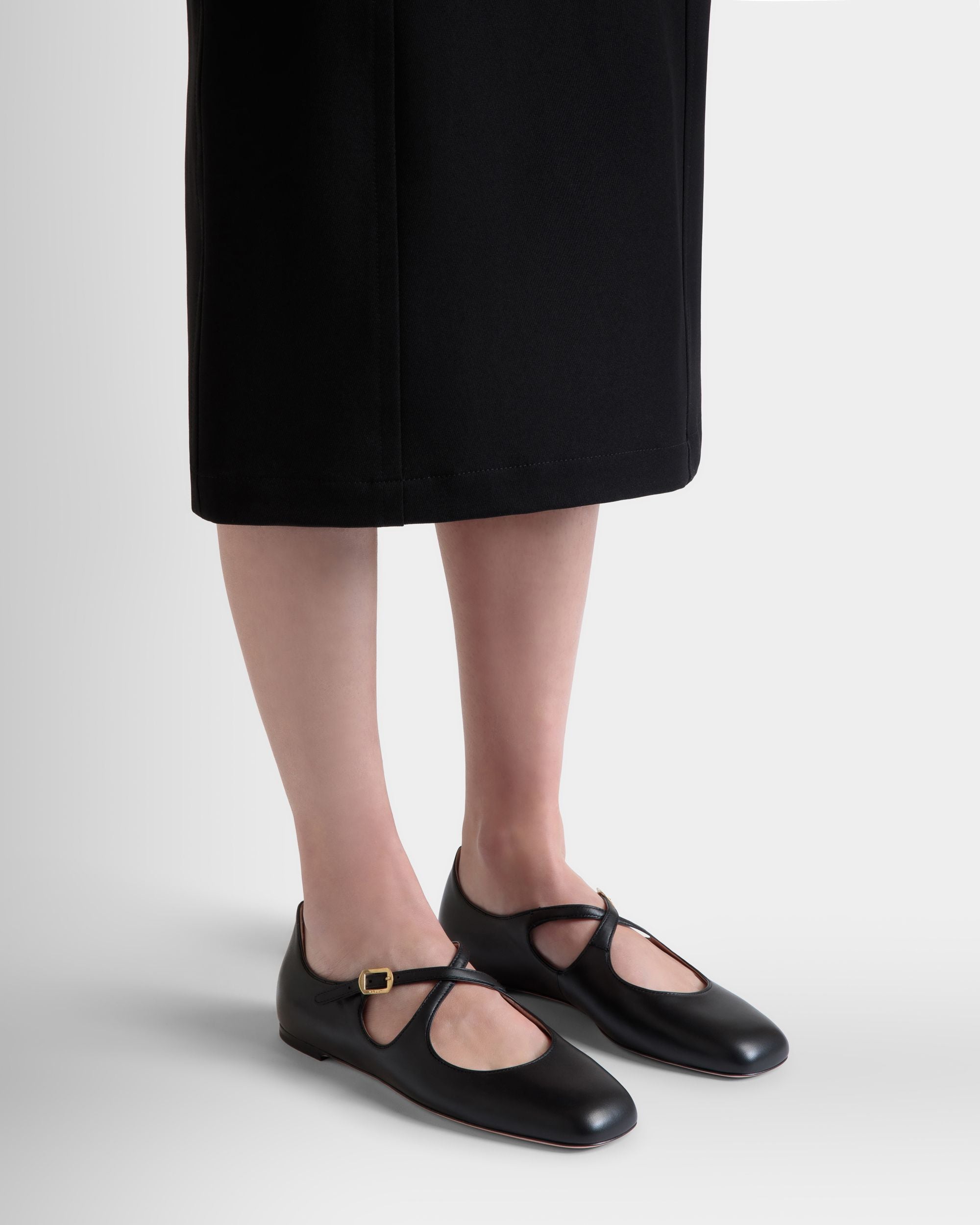 With slender criss-cross straps to the top, this Ballyrina is crafted from supple black lambskin. Inspired by an original Bally design from the 1940s, it reimagines a classic square-toe ballet flat with a modern twist.