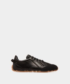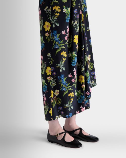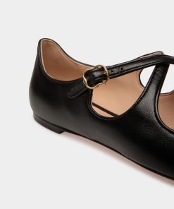 Crafted with precision, this Mary Jane ballerina made from supple black nappa-tanned lambskin features the signature criss-cross straps, an example of leatherworking and craftsmanship.