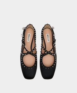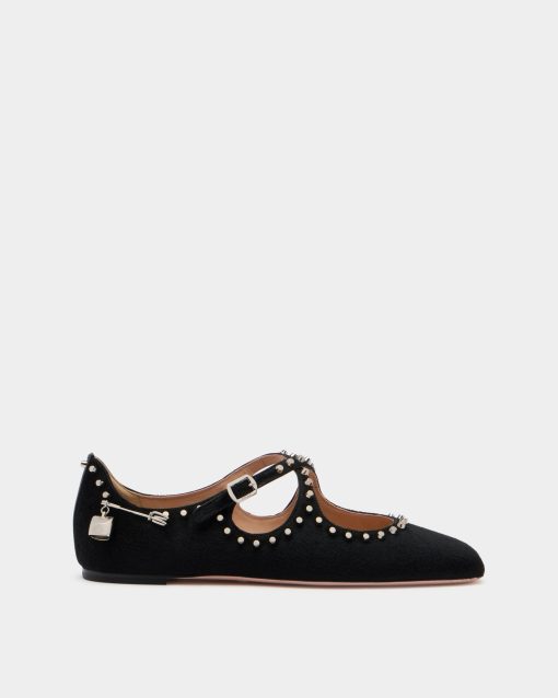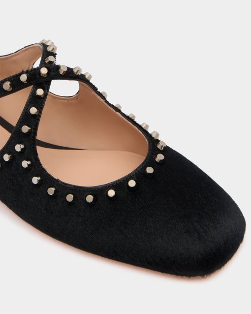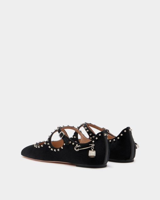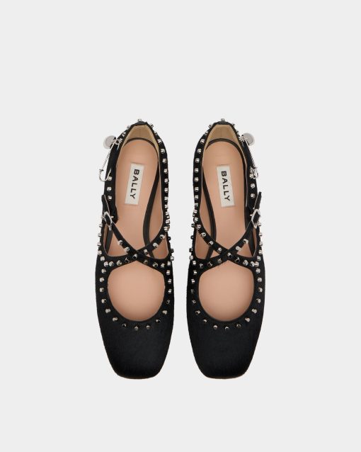 This Ballyrina flat reimagines Bally’s iconic ballet shoe with a black hair-on calfskin upper and chic metal studs. The Bally Crest is engraved on the bell of the safety pin, a signifier of the brand’s Swiss heritage.